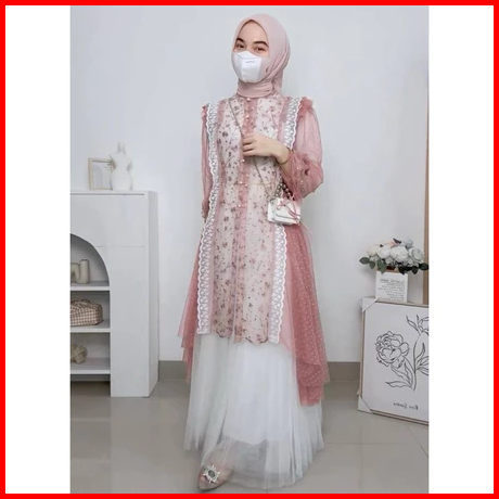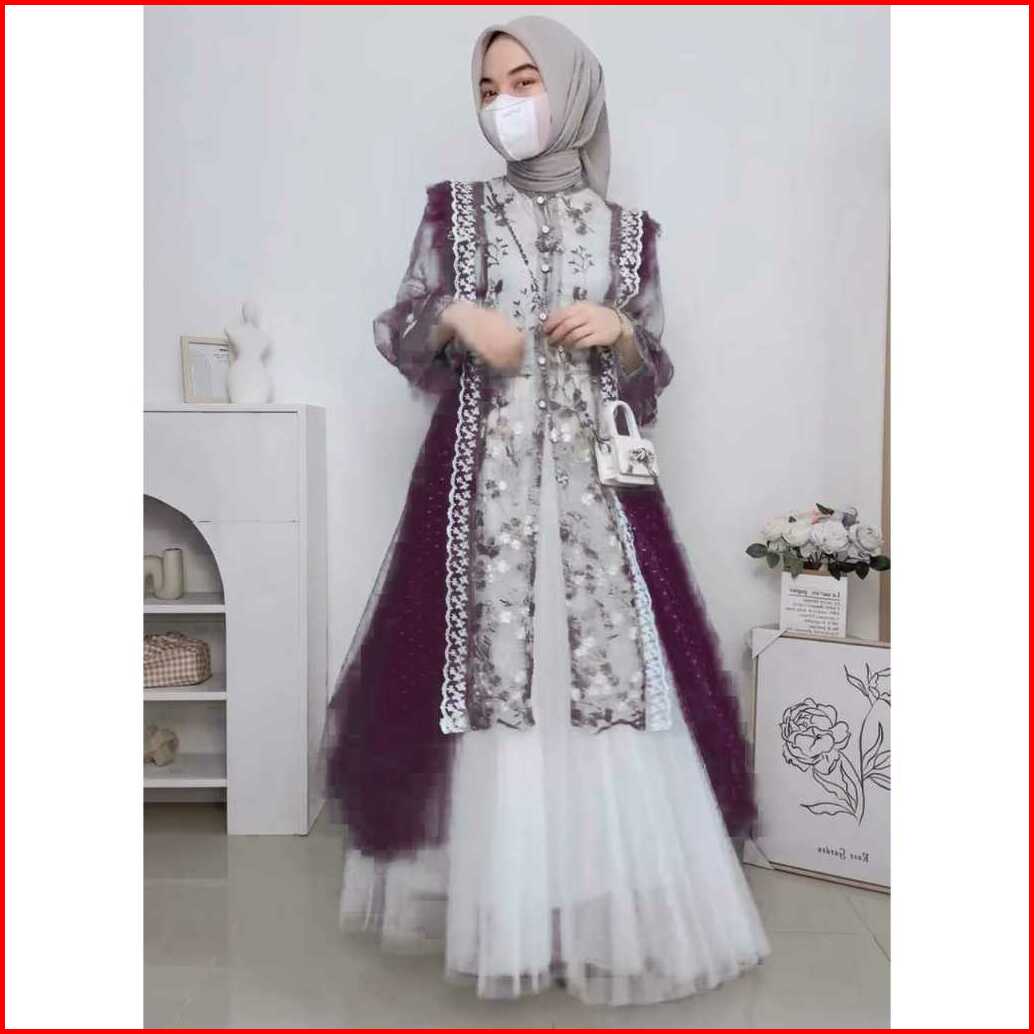 Sarah Outer Brukat Tule Bordir Mix Tule Dot Aksen Renda Outer Kondangan Lebaran 2025 Model Terbaru