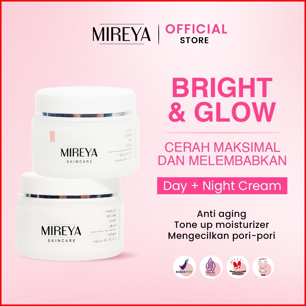 Mireya Mochi Bright Glow 1 - Day Cream Night Cream - Paket Skincare Cream Siang Malam Skin Care Mochi Cream Untuk Merawa