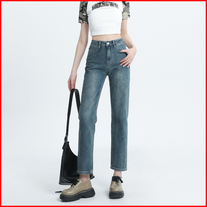 Beevalue Celana Boyfriend Panjang Jeans Bahan Ngaret Stretch Melar Celana Loose Highwaist Bahan Melar Warna Biru Retro B