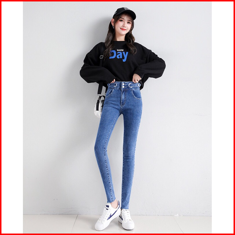 Beevalue Celana Panjang Jeans Wanita Highwaist Skinny Jeans Dua Kancing Celana Panjang Hw Jeans Celana Jeans Polos Bahan