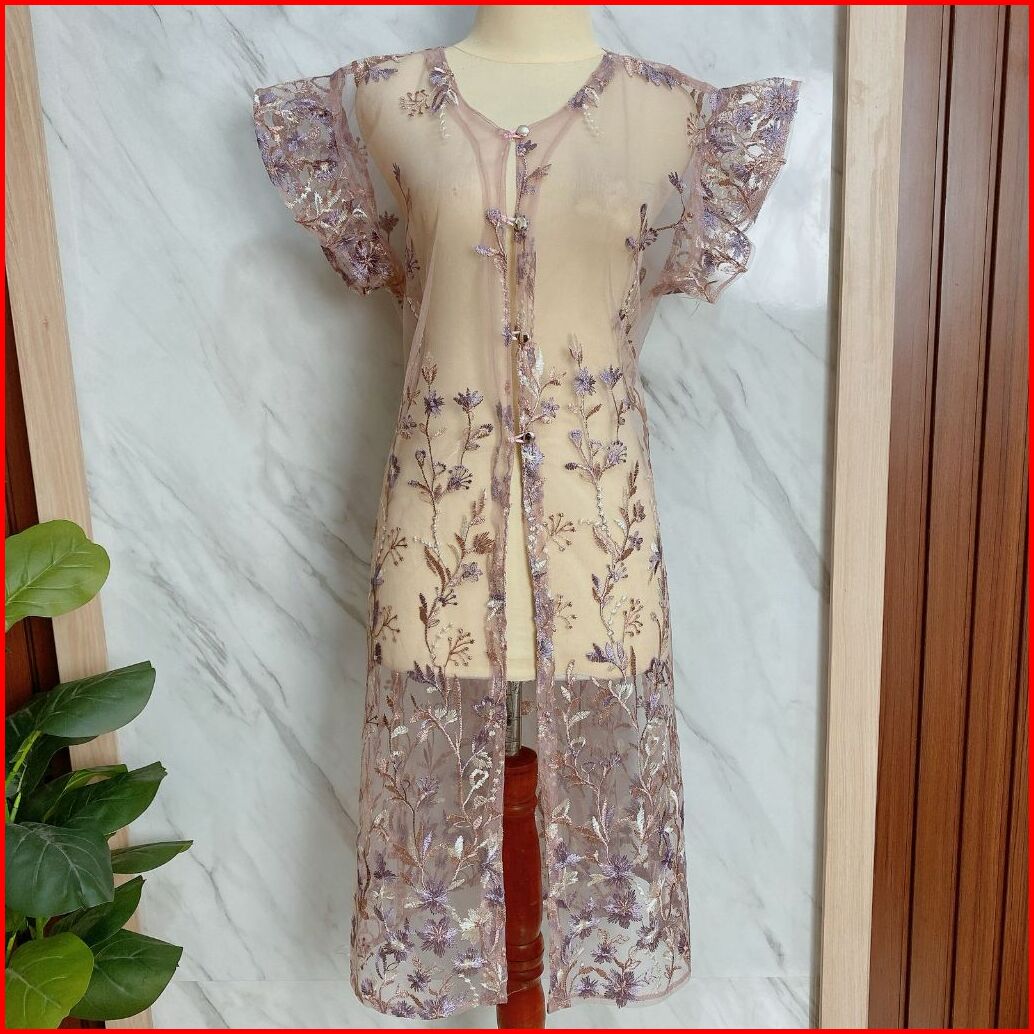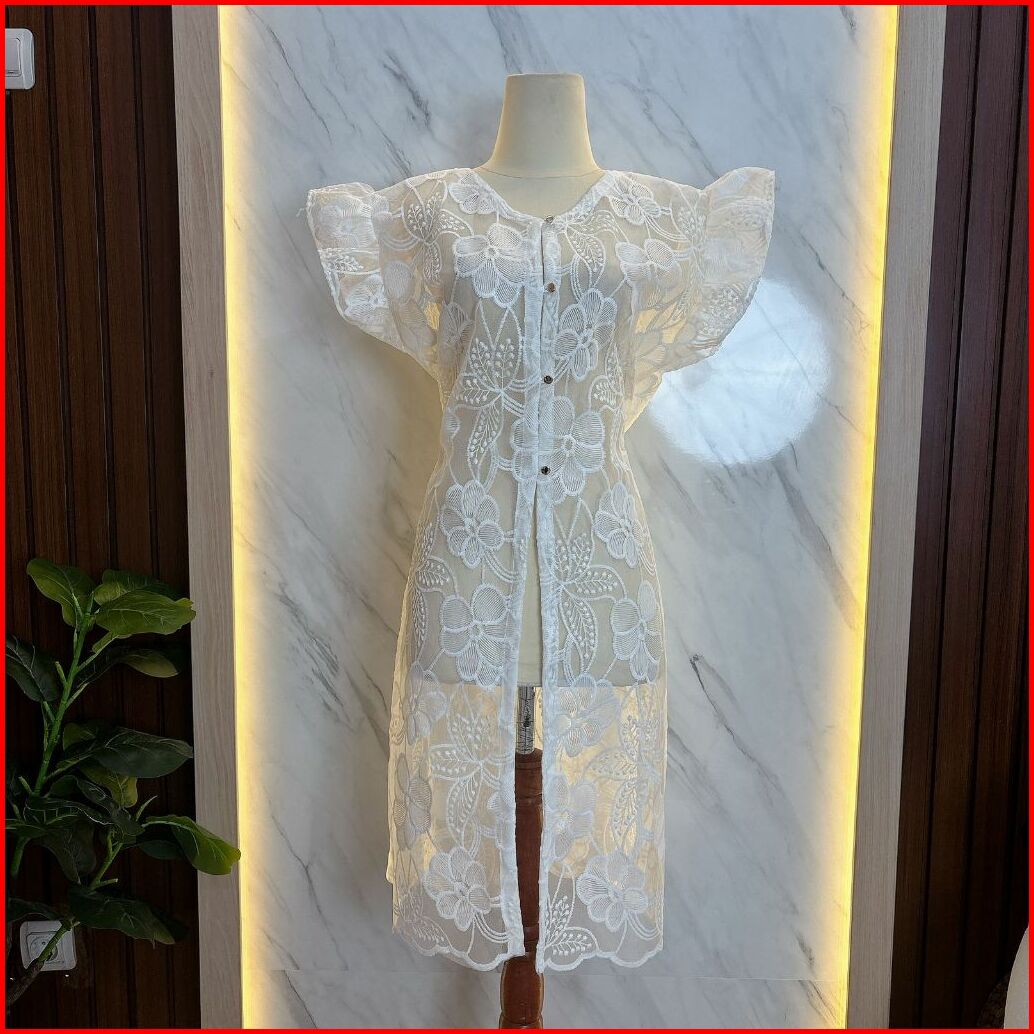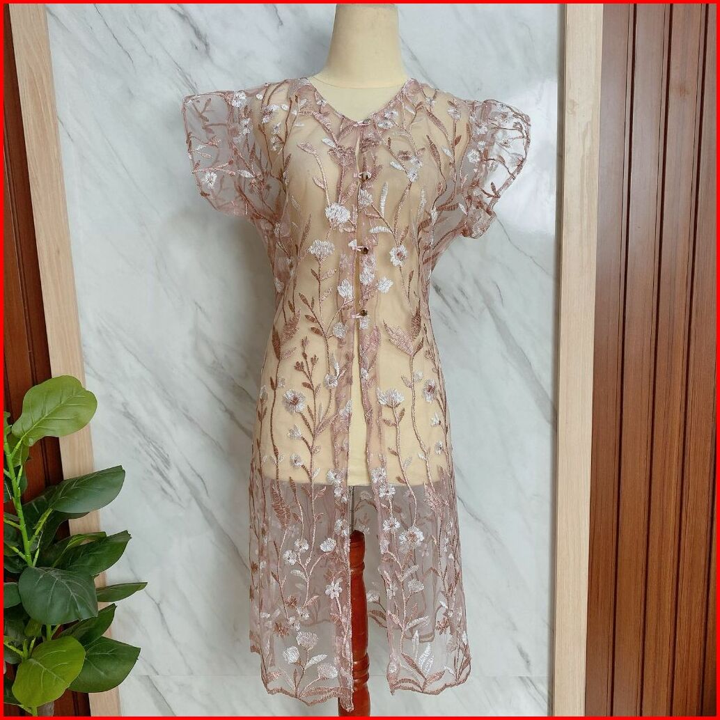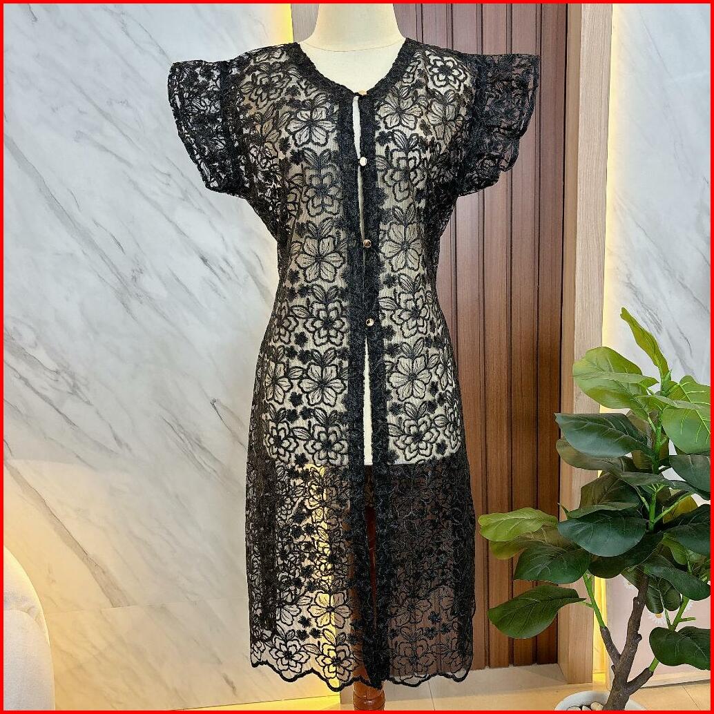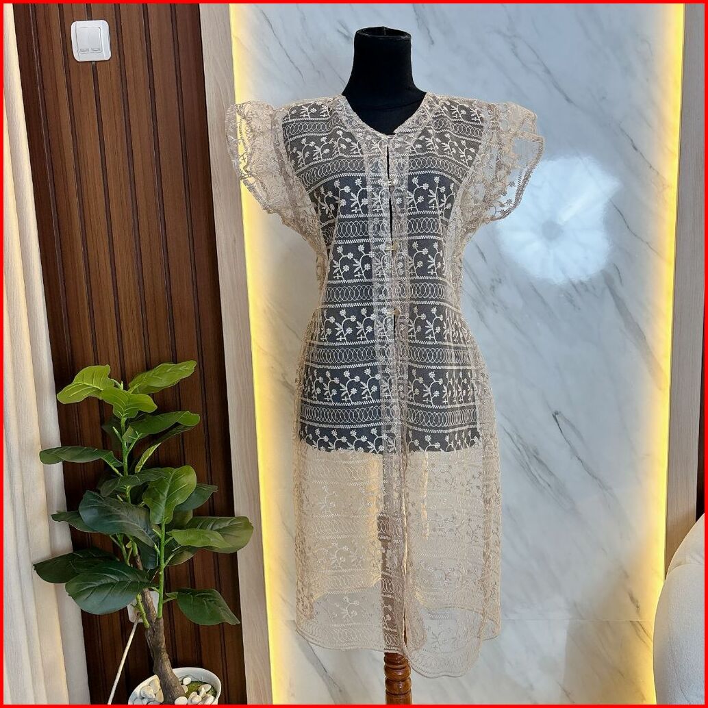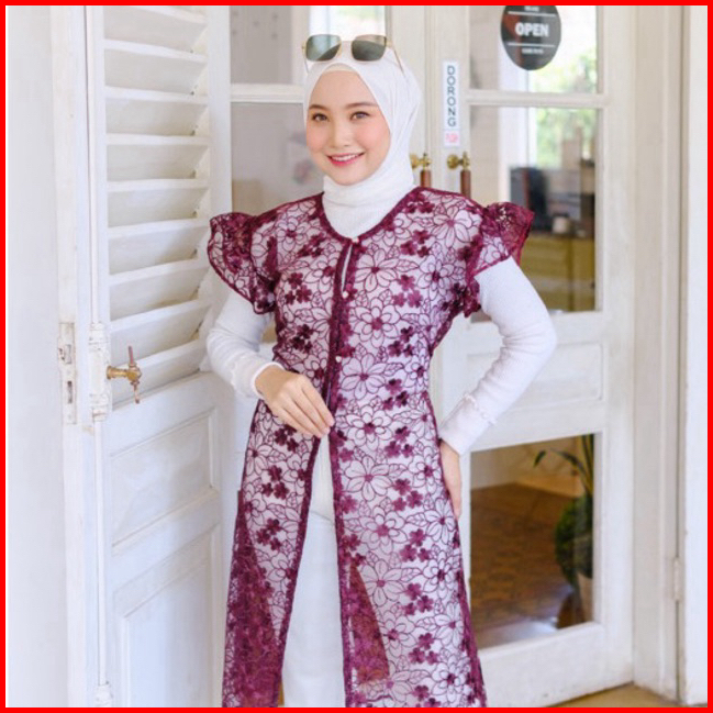 Delova Wardrobe - Outer Juwita Brokat Modern Premium Sleeveless Top Motif Bunga Brukat Renda Tule Tile Lace Outfit Konda