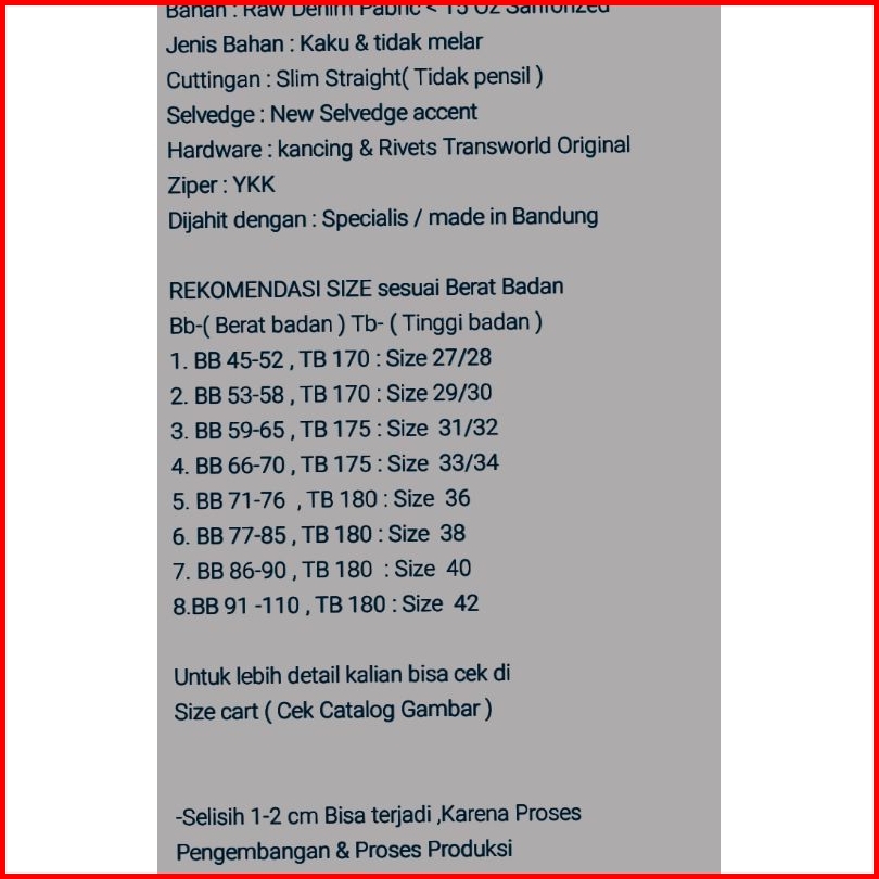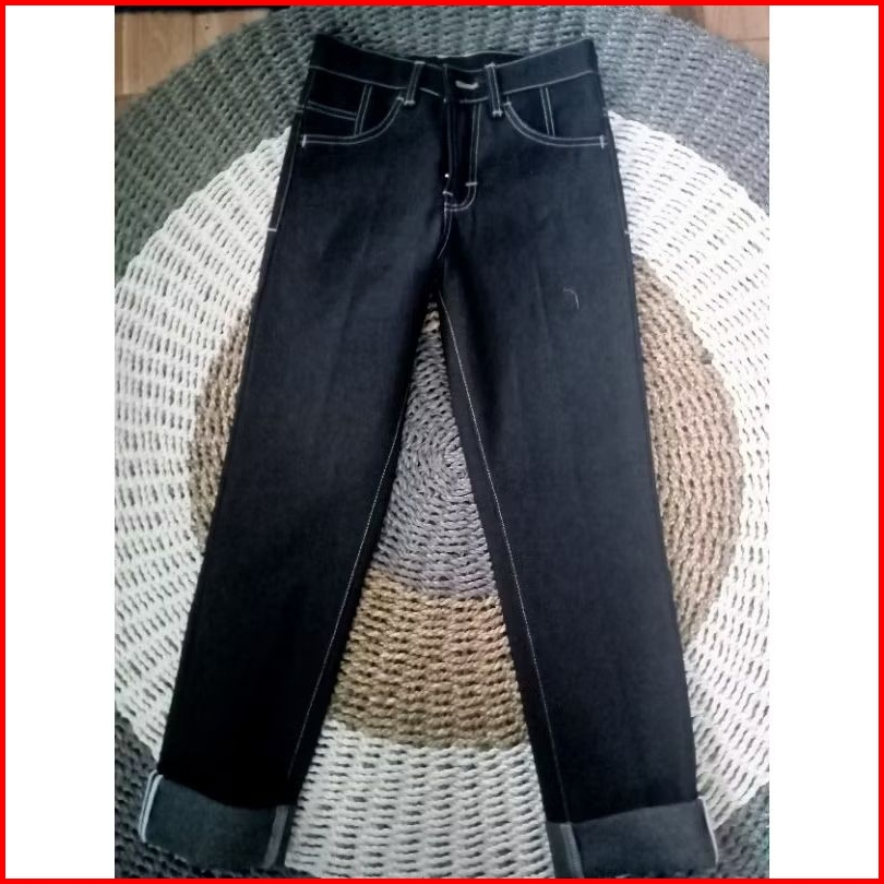 Celana Denim Selvedge Accent 15 Oz Black Indigo Bahan Raw Denim Bisa Feding