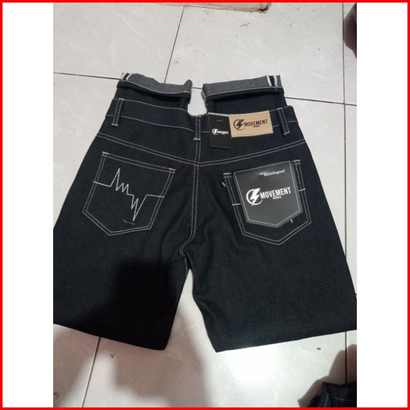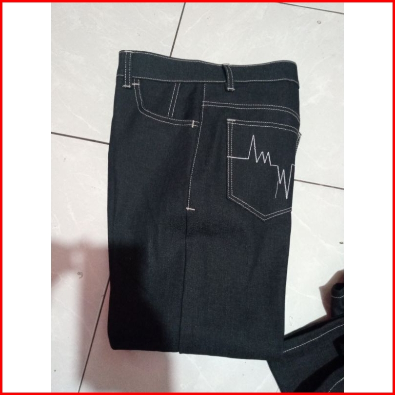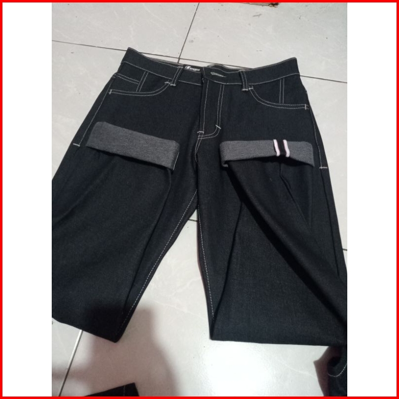 Jeans Pria Selveg Denim Panjang Selvedge 15oz Kaku Black Indigo