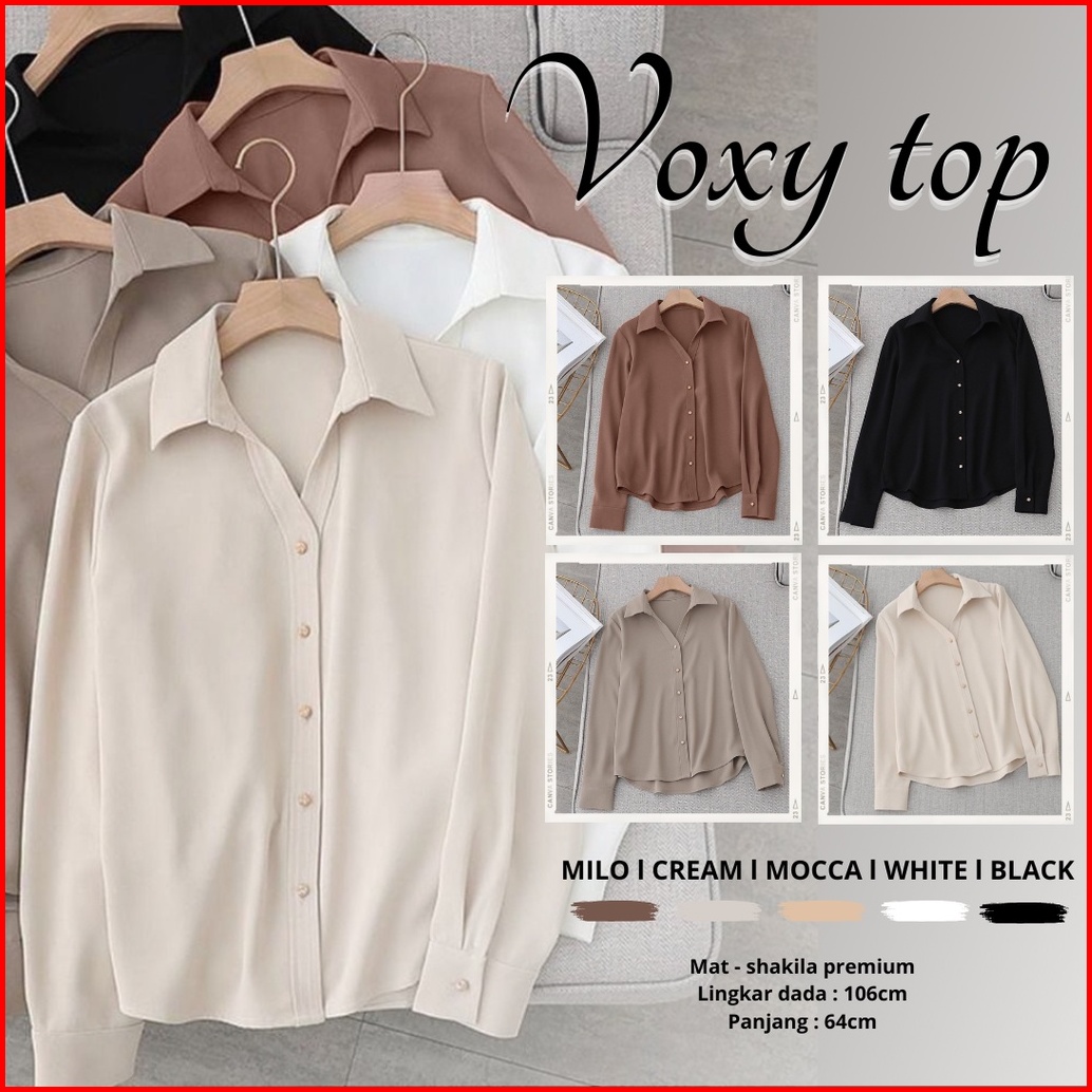 Top Casual Wanita Voxy Shirt Kemeja Blouse Wanita Polos Atasan Korea