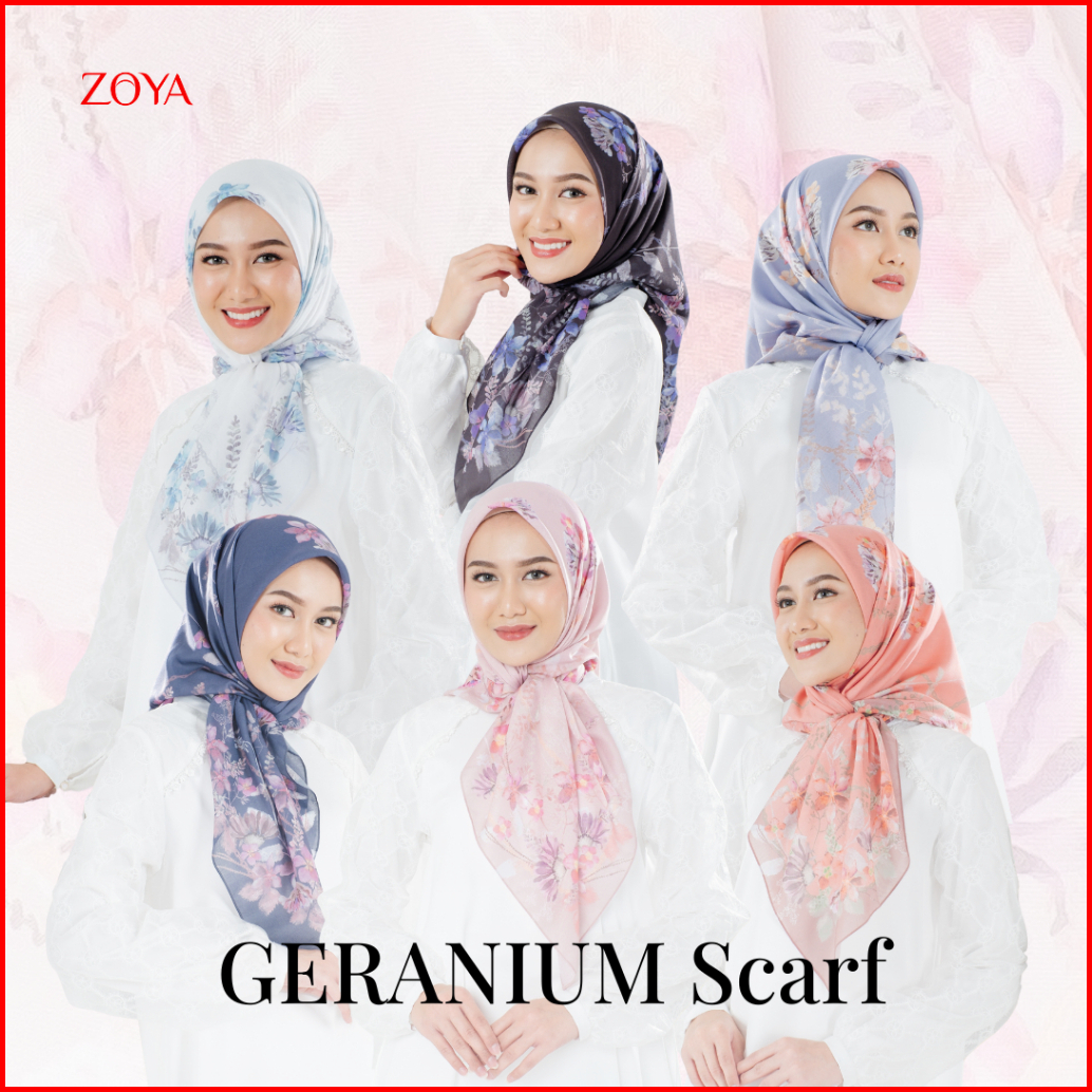 Zoya - Geranium Print Scarf - Kerudung Hijab Segi Empat Motif - Box