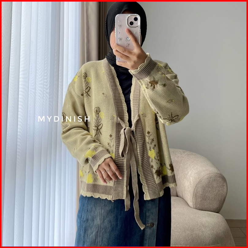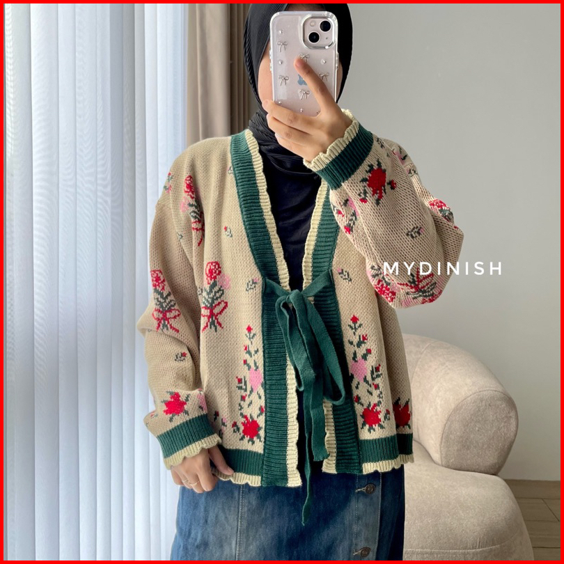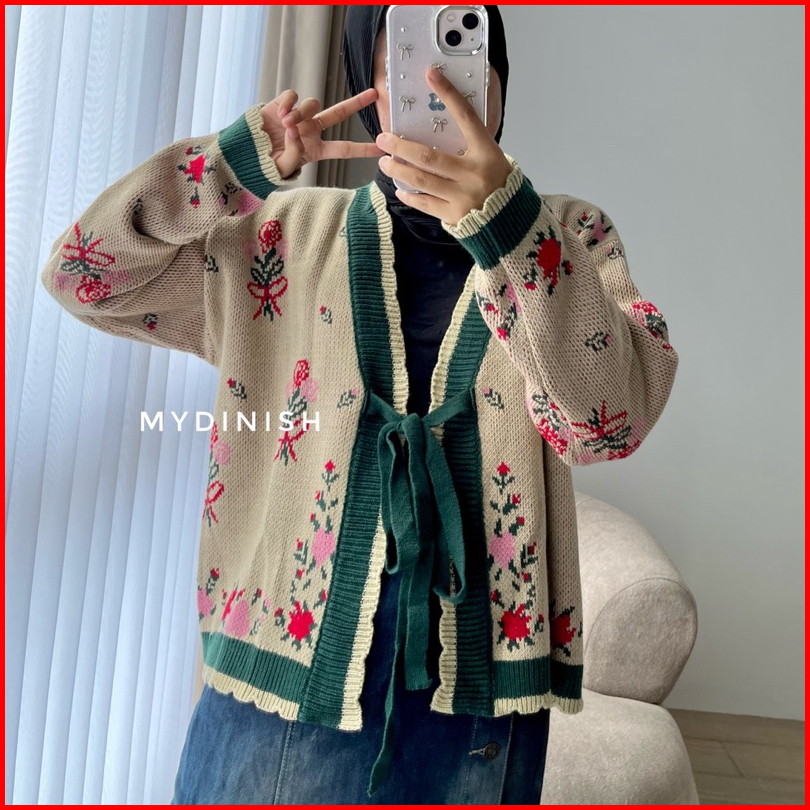 Nimel Flower Cardy - Kardigan Wanita Motif Bunga Bahan Rajut