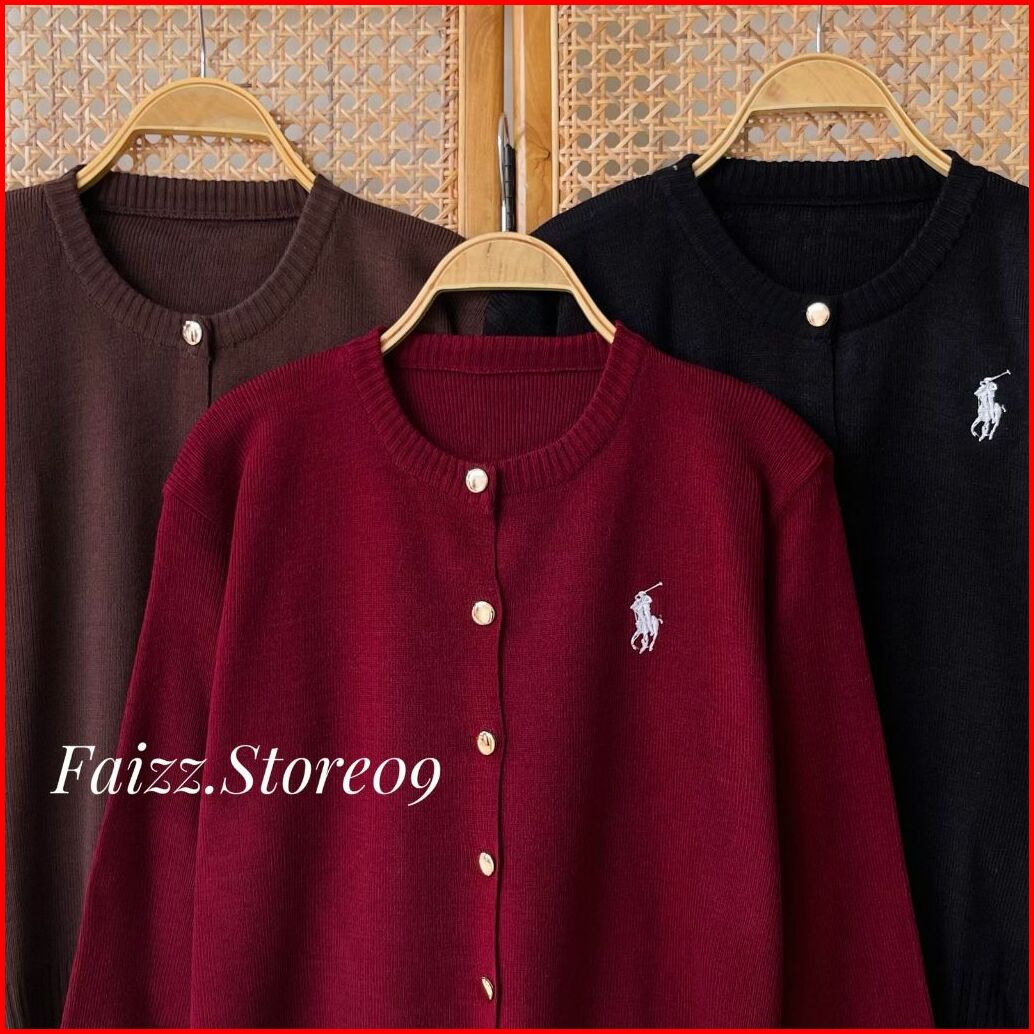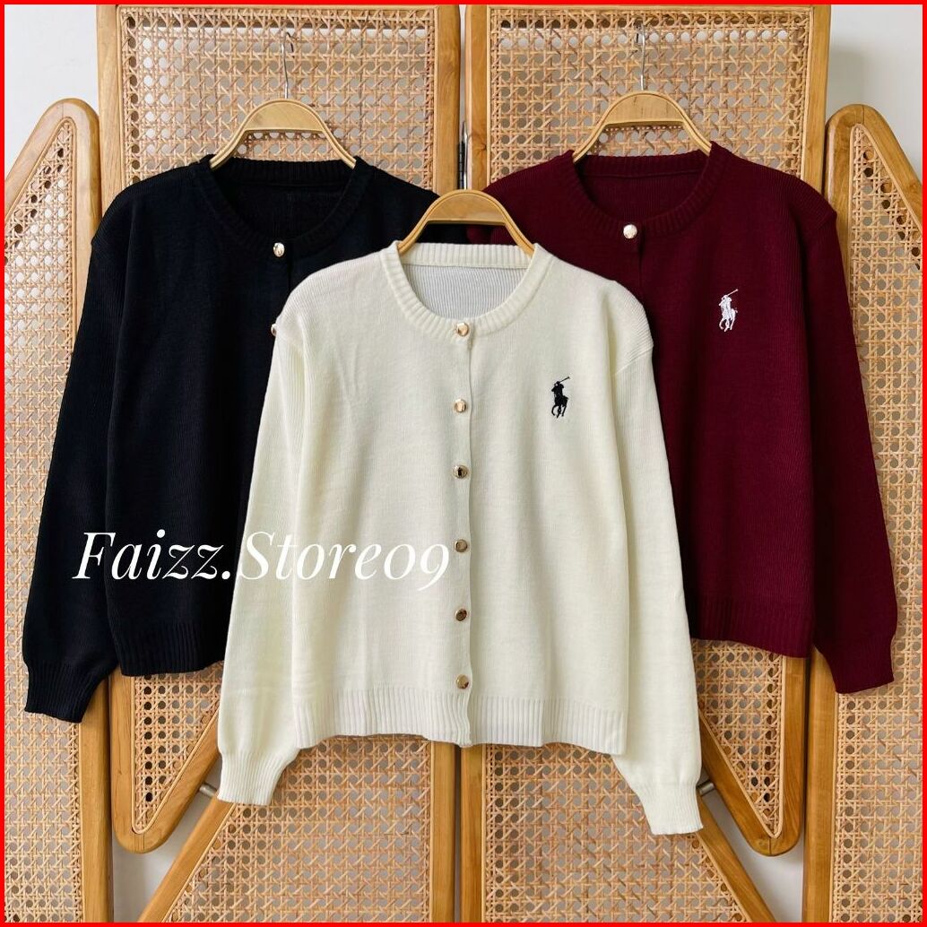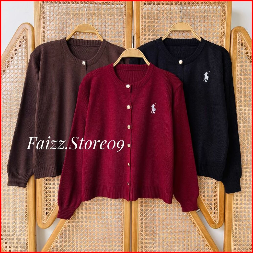 Nani Cardy Knit - Atasan Cardigan Rajut Kancing Polo Horse Motif Simple Bahan Lembut Korean Style