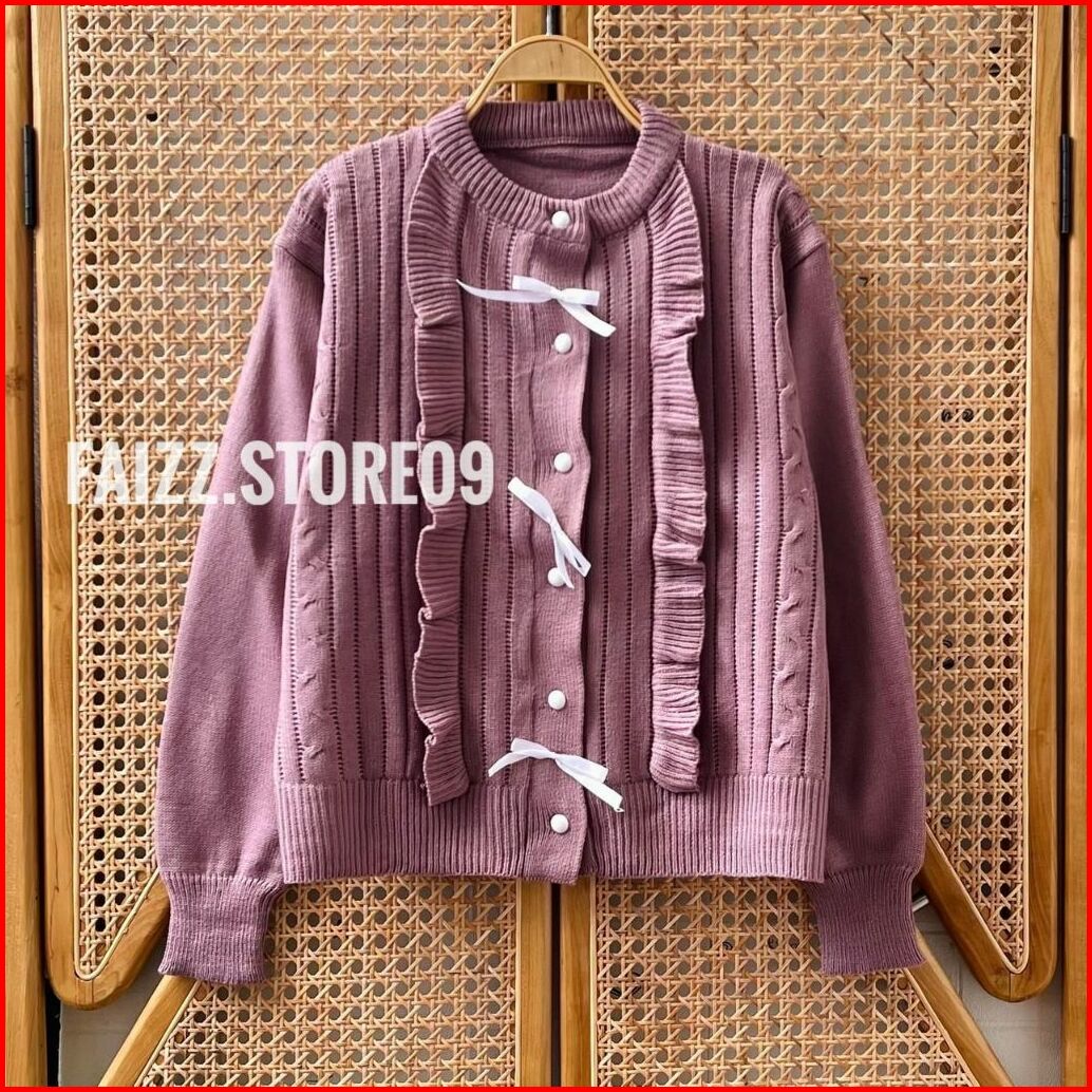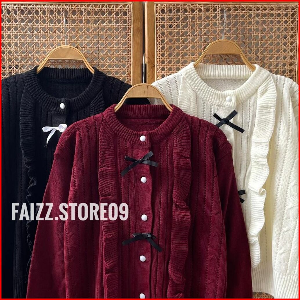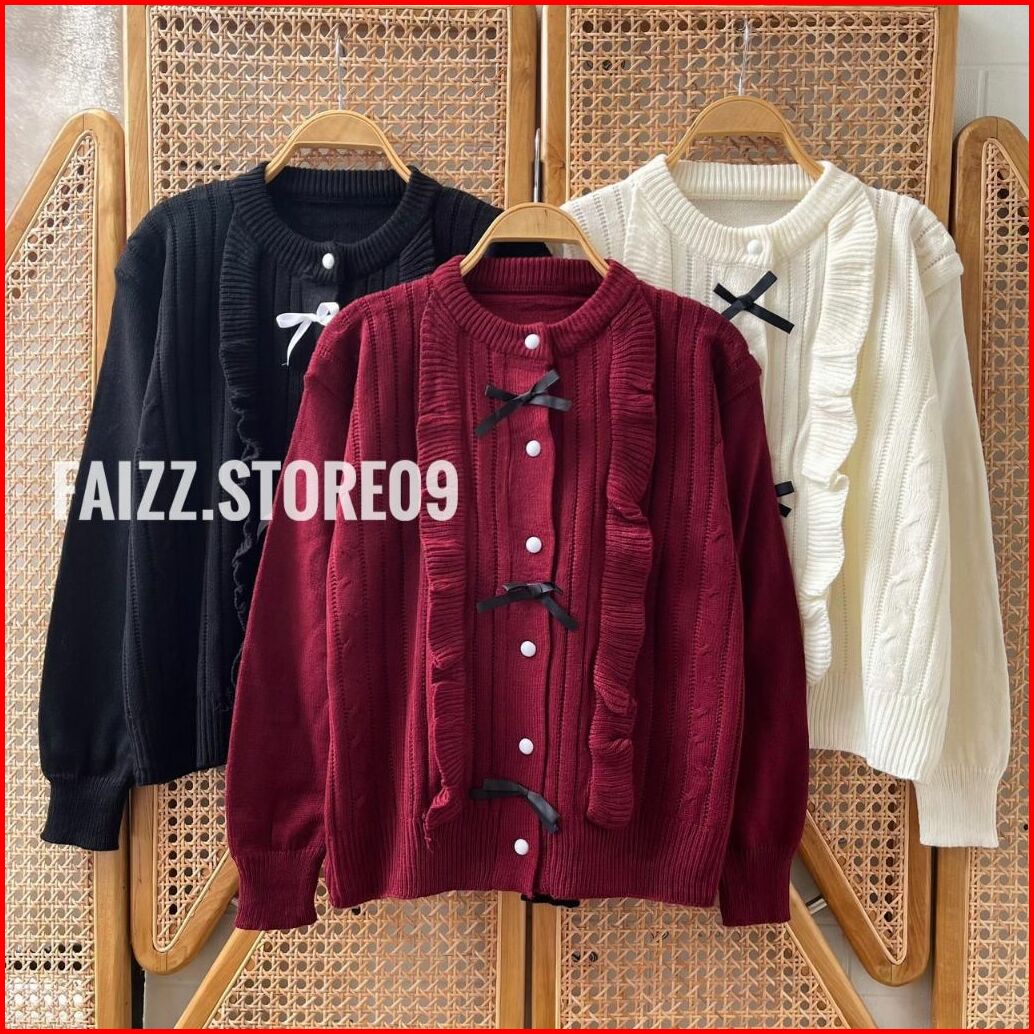 Axinee Knits - Atasan Cardigan Rajut Kancing Wanita Motif Cable Pita Renda Kekinian Korean Style Premium