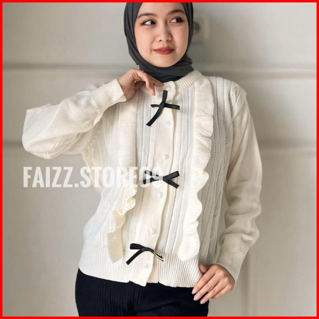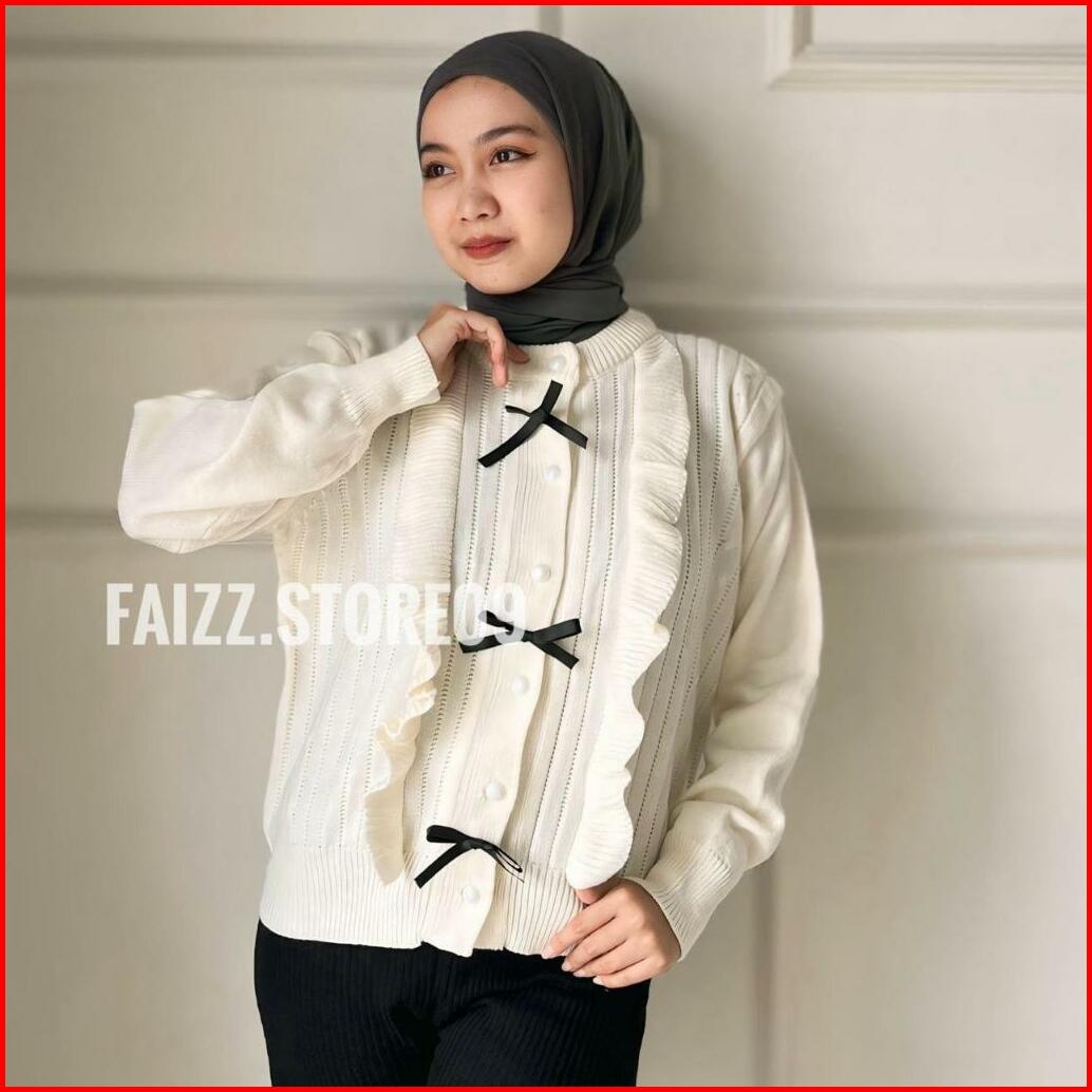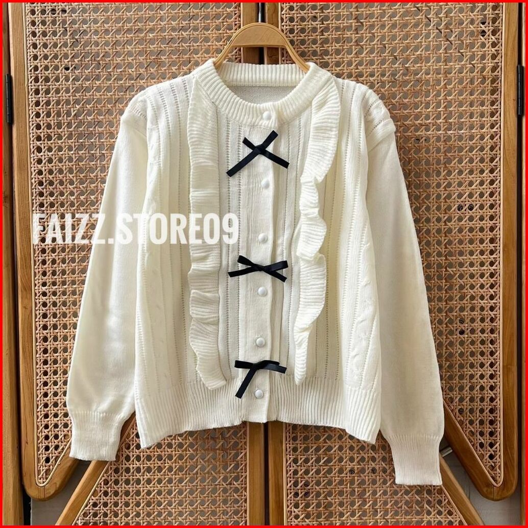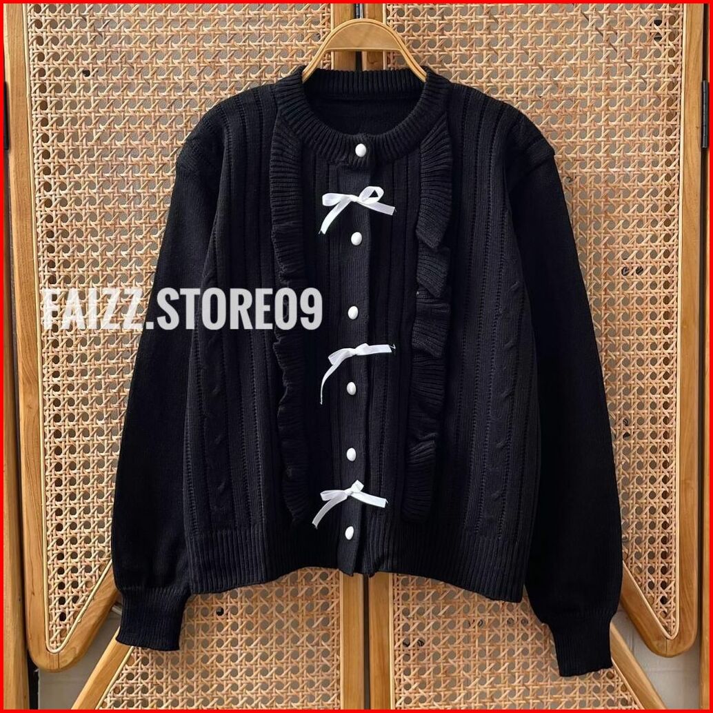 Axinee Knits - Atasan Cardigan Rajut Kancing Wanita Motif Cable Pita Renda Kekinian Korean Style Premium