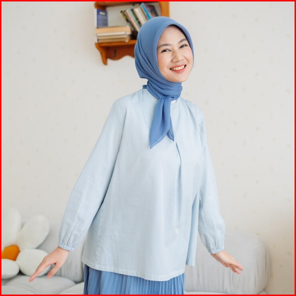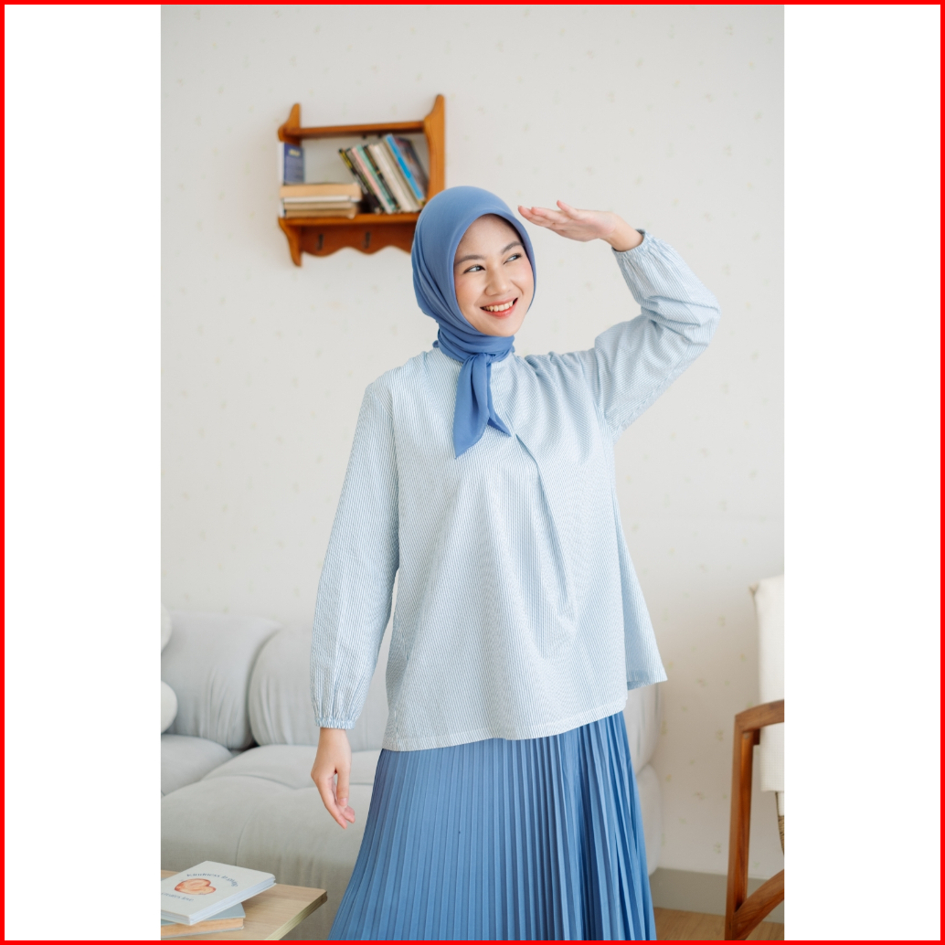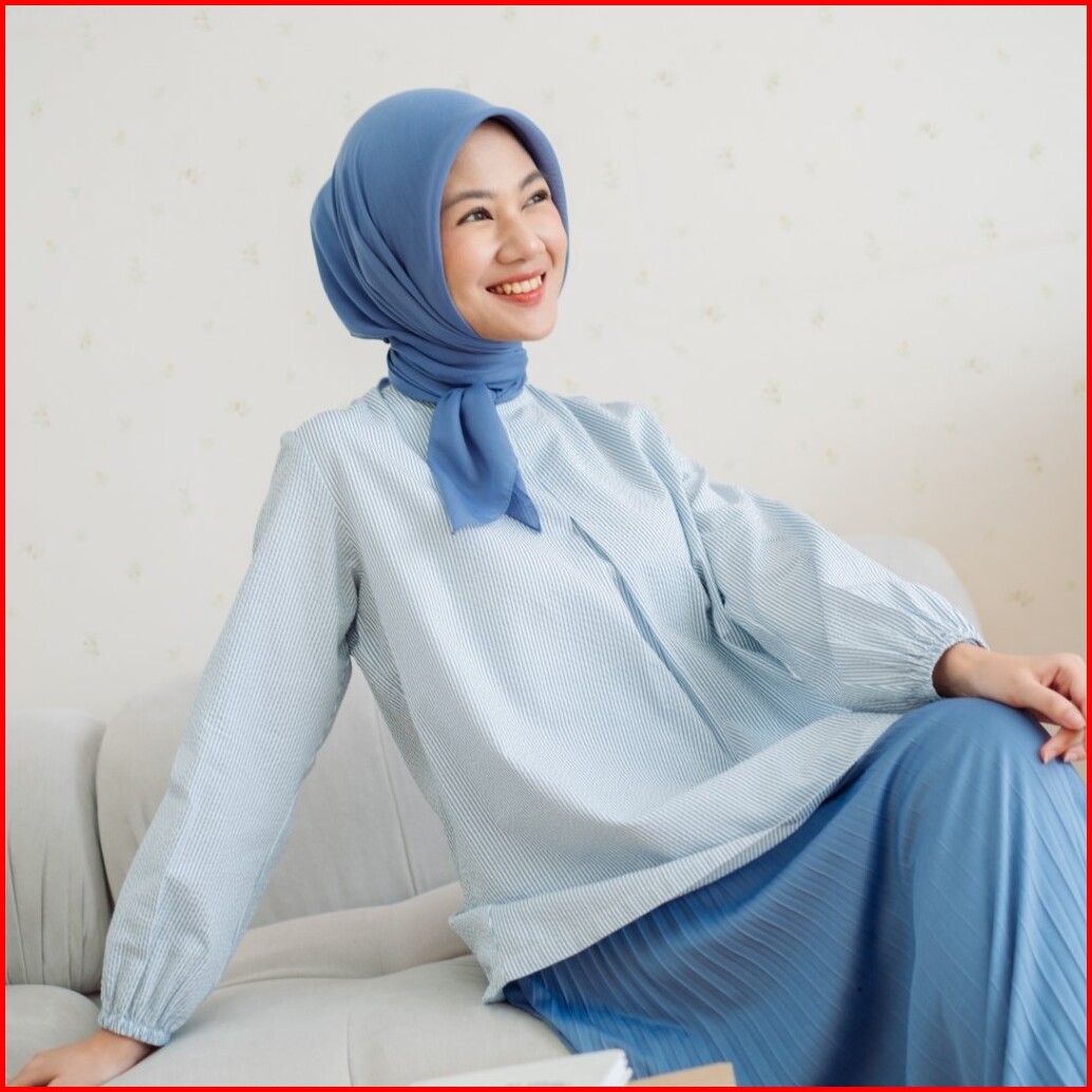 Zoya Karina Blouse Blue - Atasan Wanita Wudhu Friendly Bahan Premium Cotton Blend