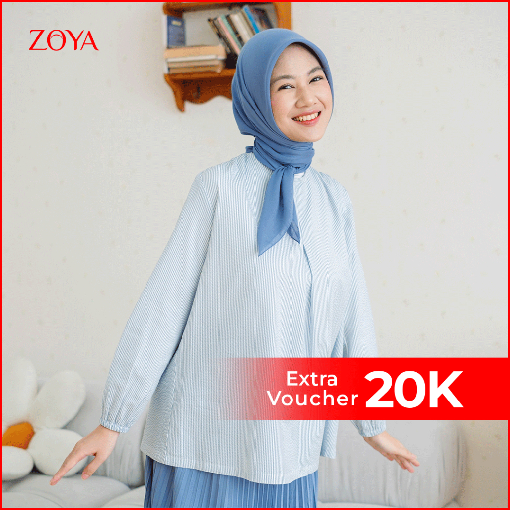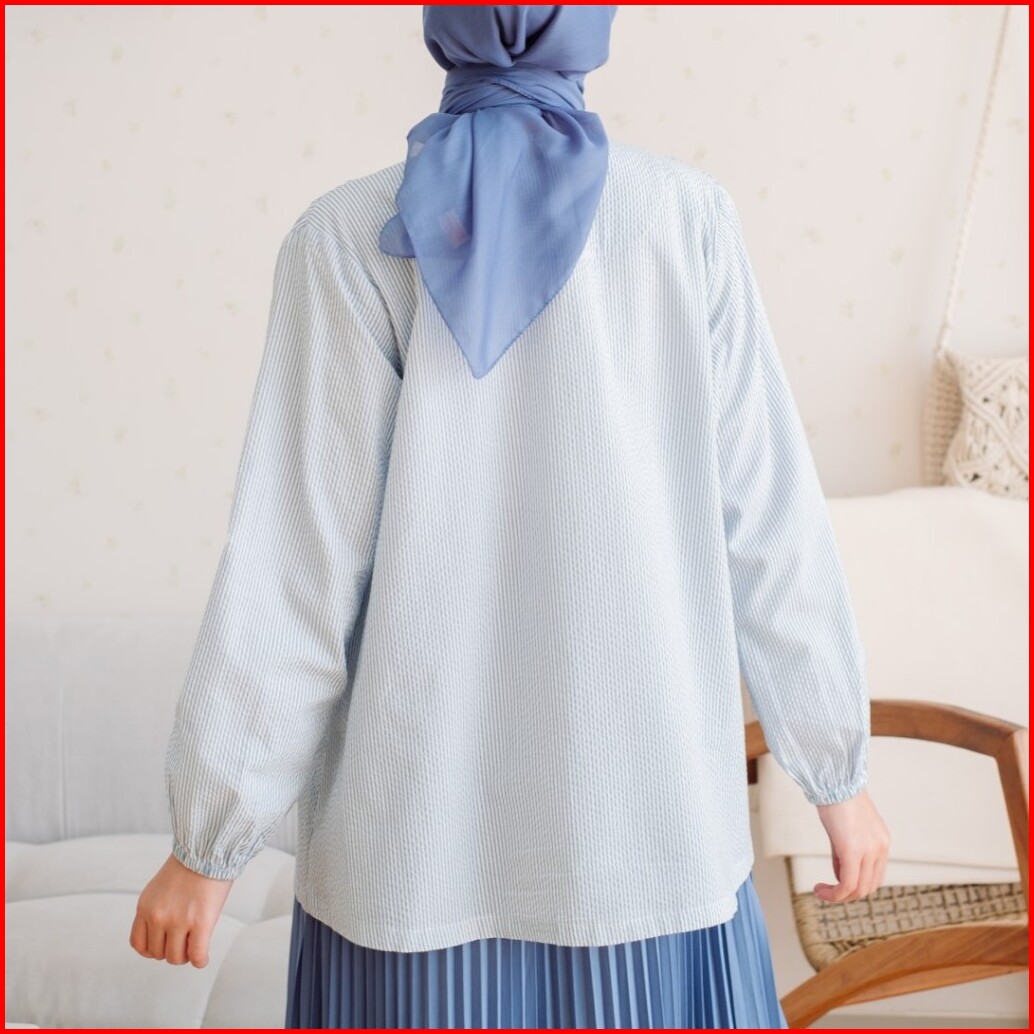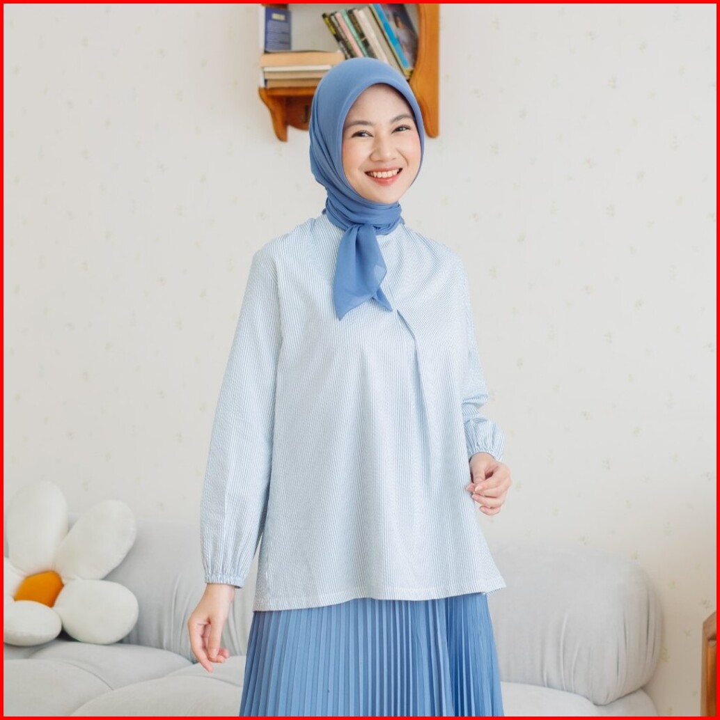 Zoya Karina Blouse Blue - Atasan Wanita Wudhu Friendly Bahan Premium Cotton Blend