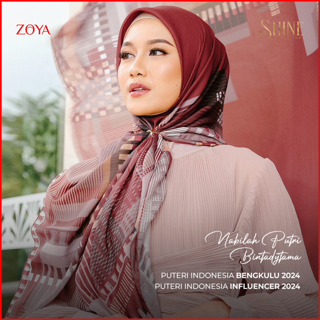 Zoya Audra Print Scarf - Kerudung Hijab Segiempat Motif With Box - Bahan Voal - Ukuran 115x115
