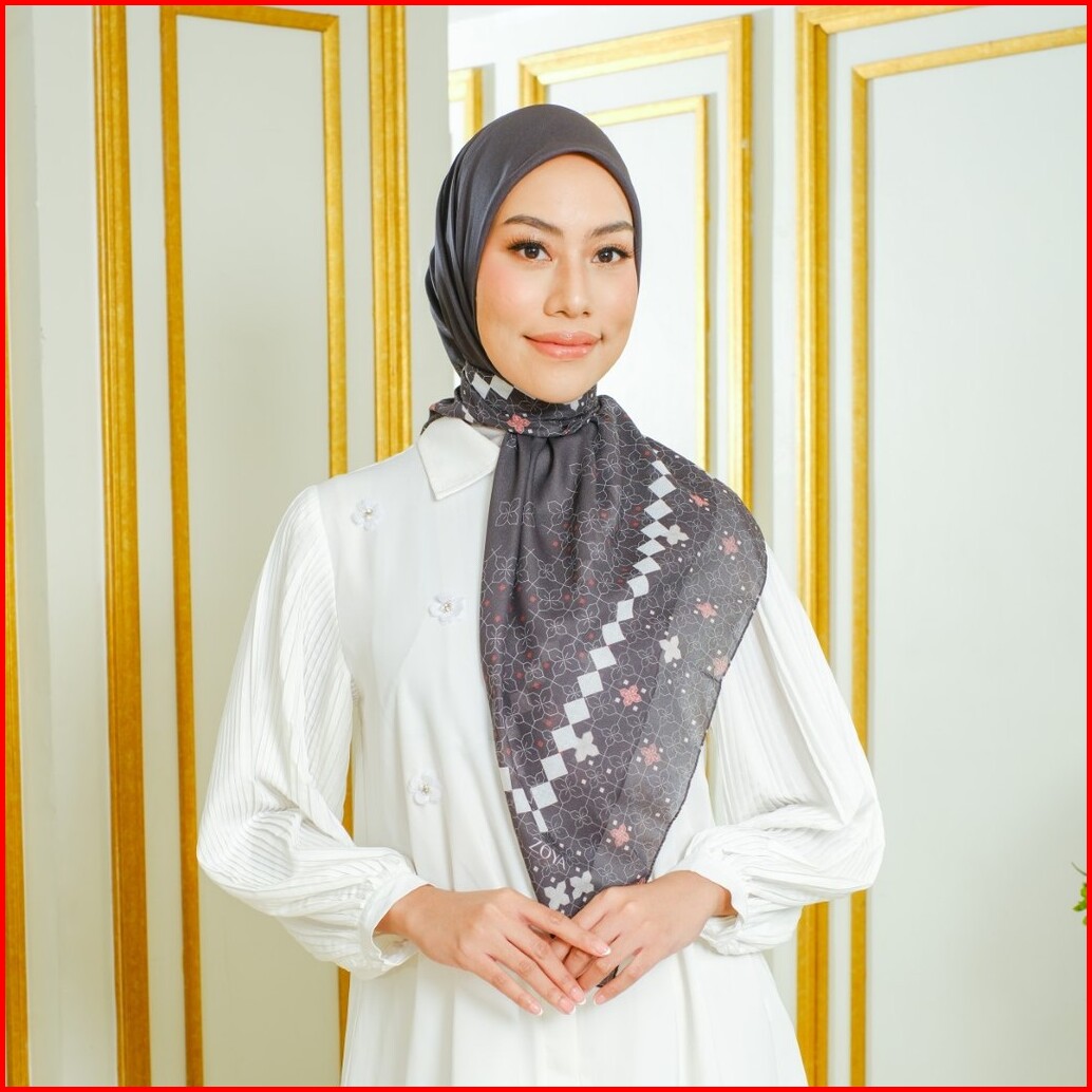 Zoya Madelin Print Scarf - Hijab Segi Empat Motif With Box - Bahan Voal Premium - Ukuran 115x115