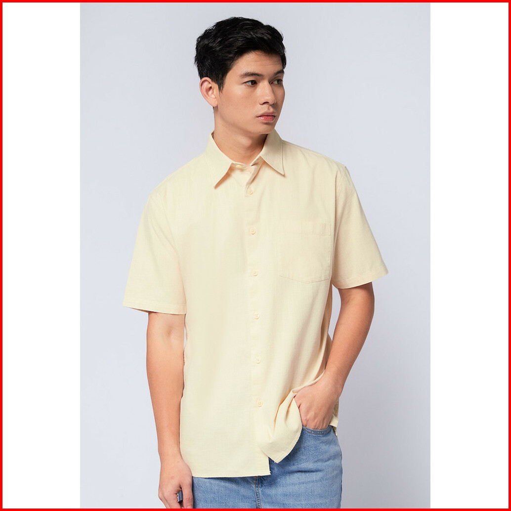 Executive Regular Fit Short Sleeve Slub Shirt Beige