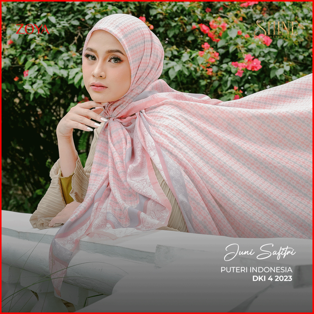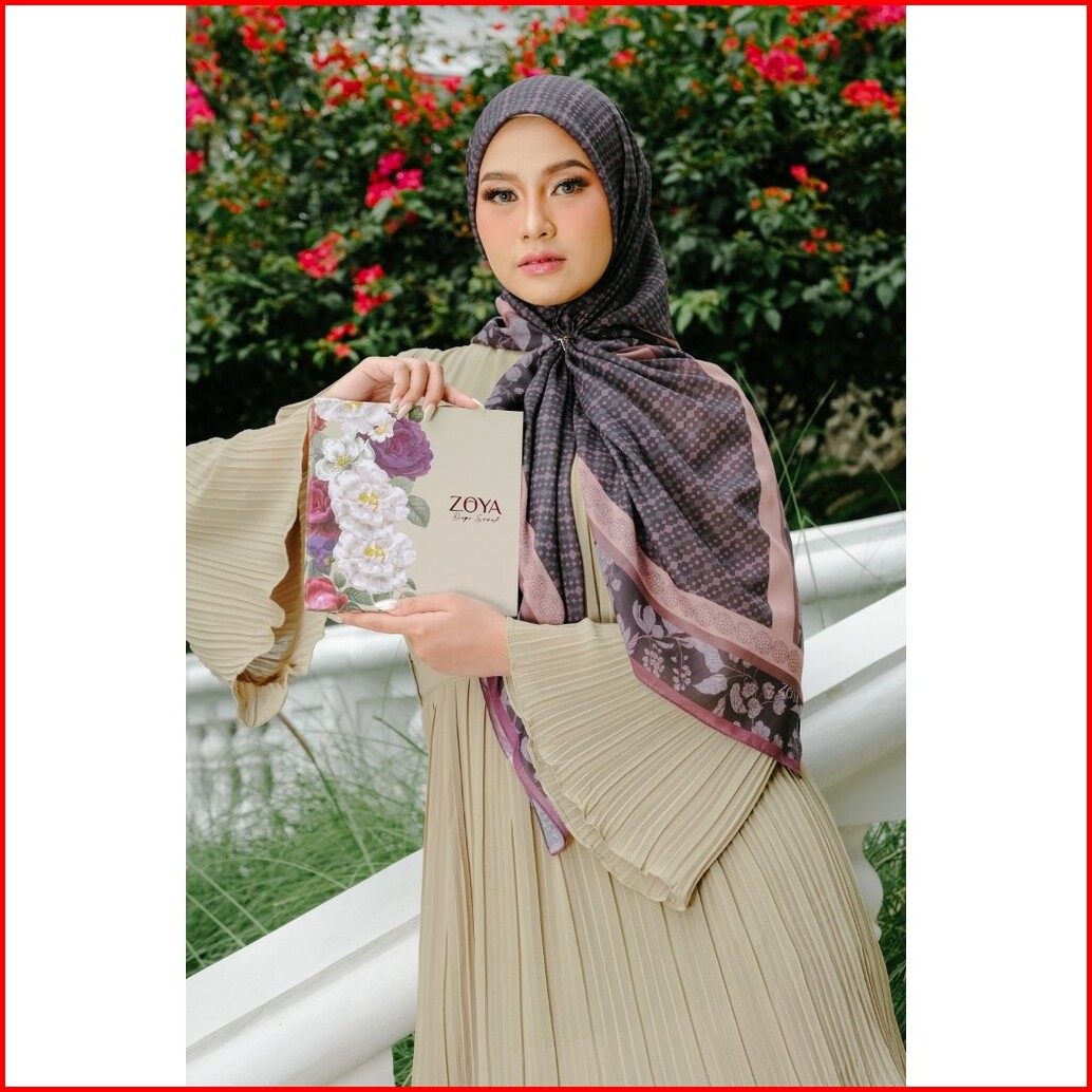 Zoya Rivera Print Scarf - Kerudung Hijab Segiempat Motif With Box - Voal Premium - Size 115x115