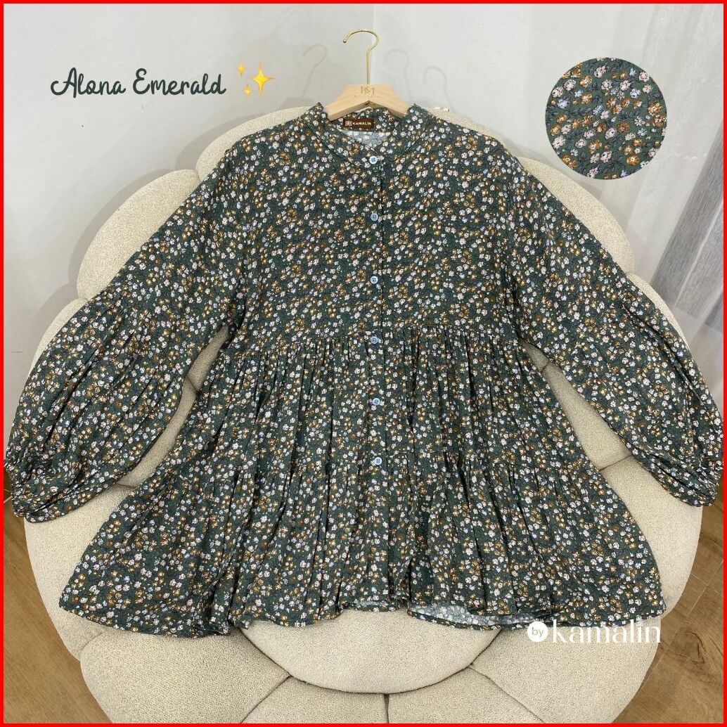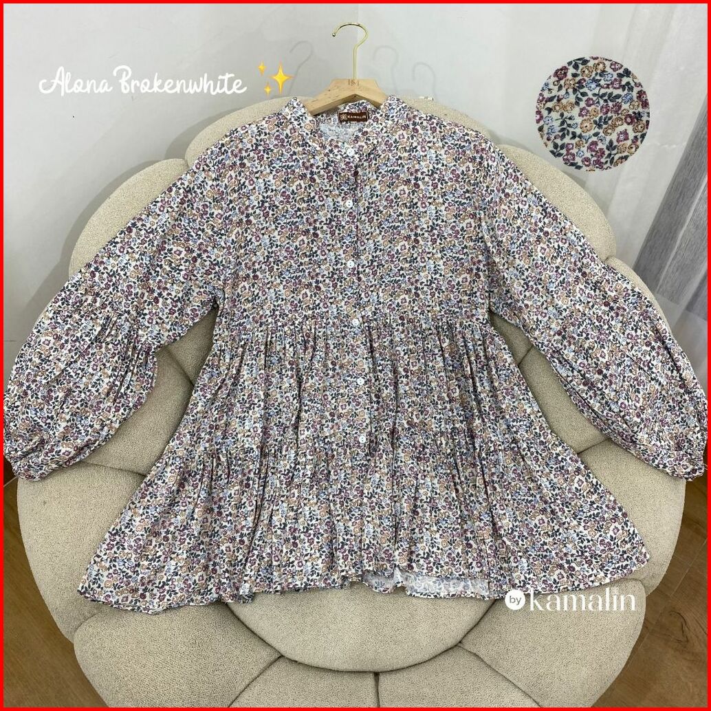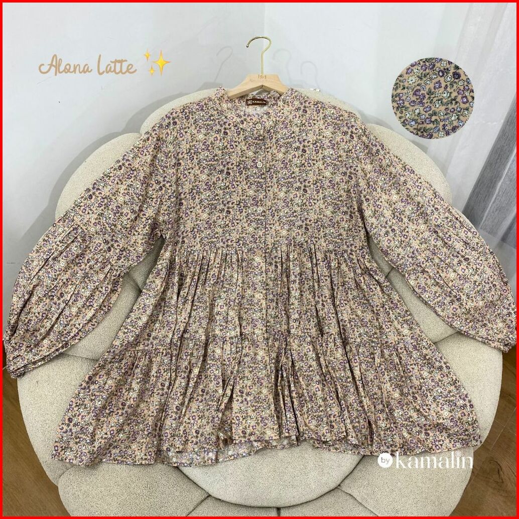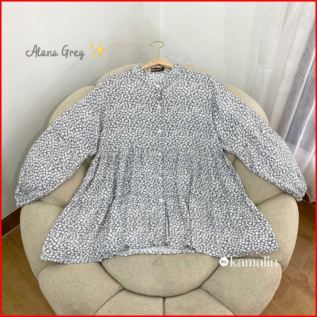 Blouse Wanita Jumbo Korean Style Lengan Panjang Elegan Modis Terbaru 2025 Motif Alona By Kamalin