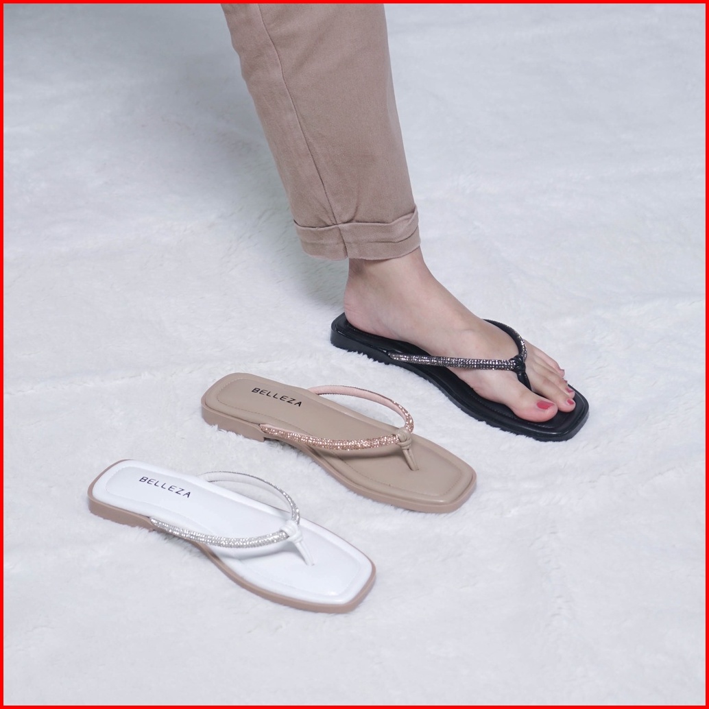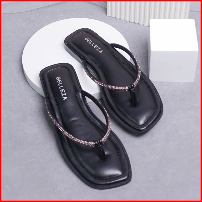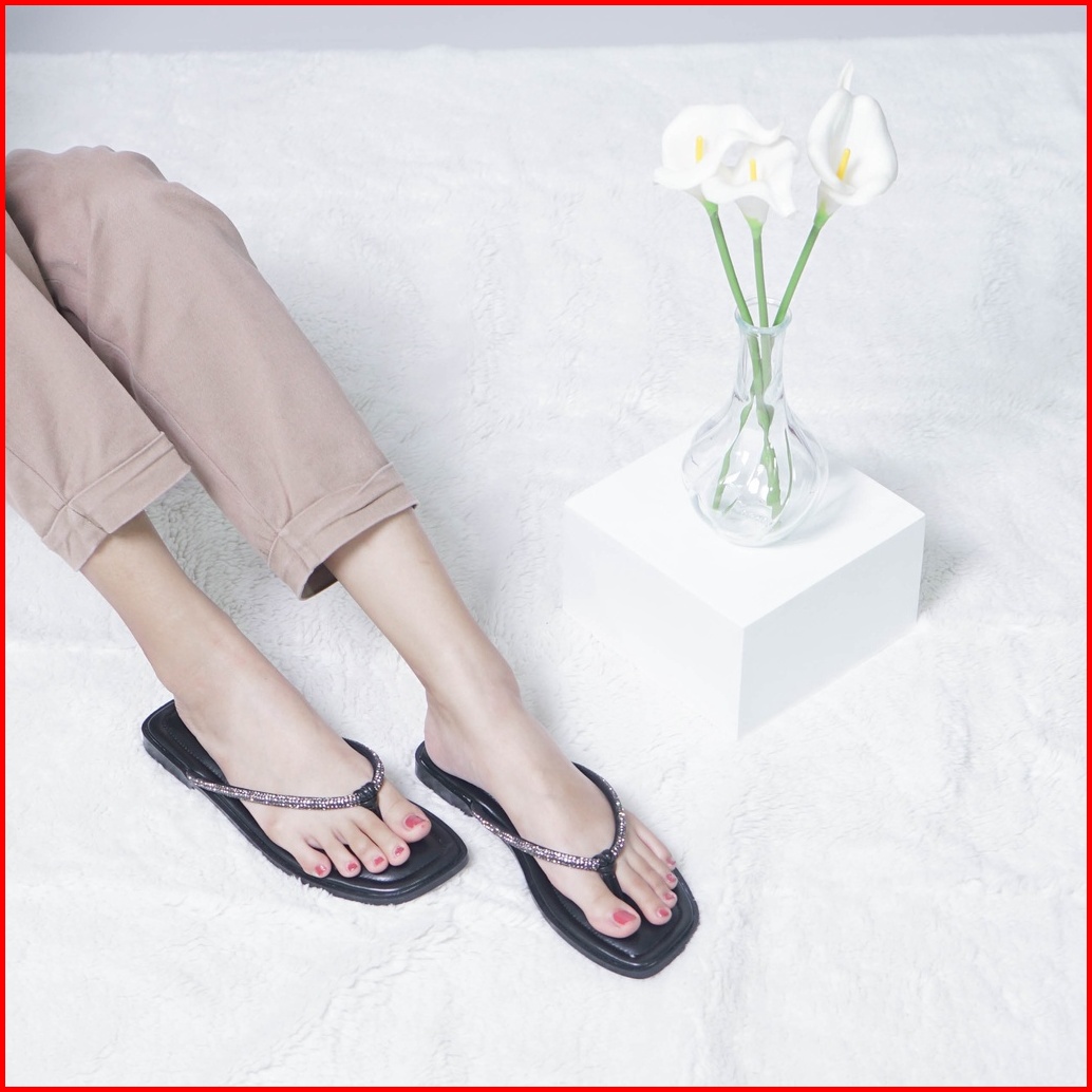 Belleza Mall - Sandal Flat Safi Black Sendal Jepit Santai Wanita Sandals Pergi Rumah Flats Cewek Perempuan Beleza Shoes
