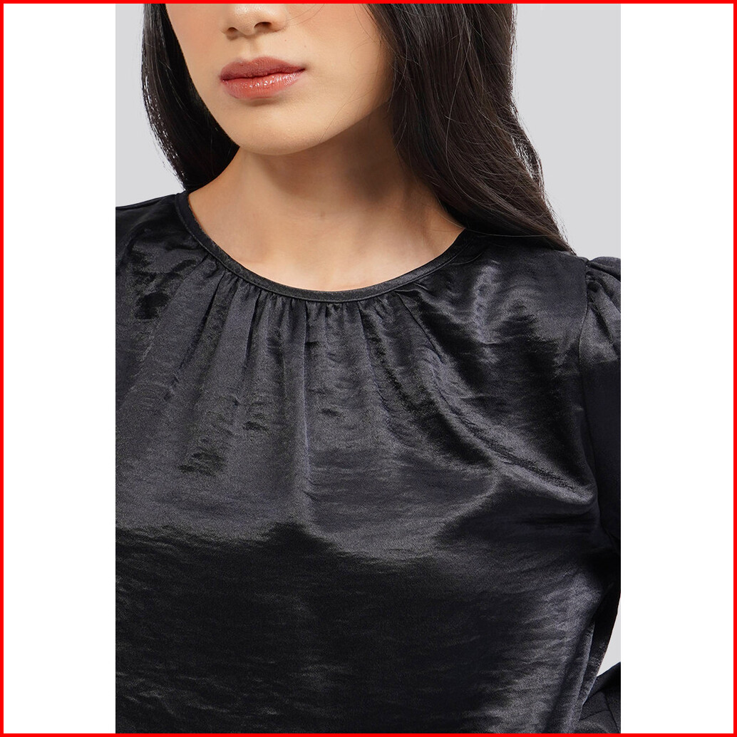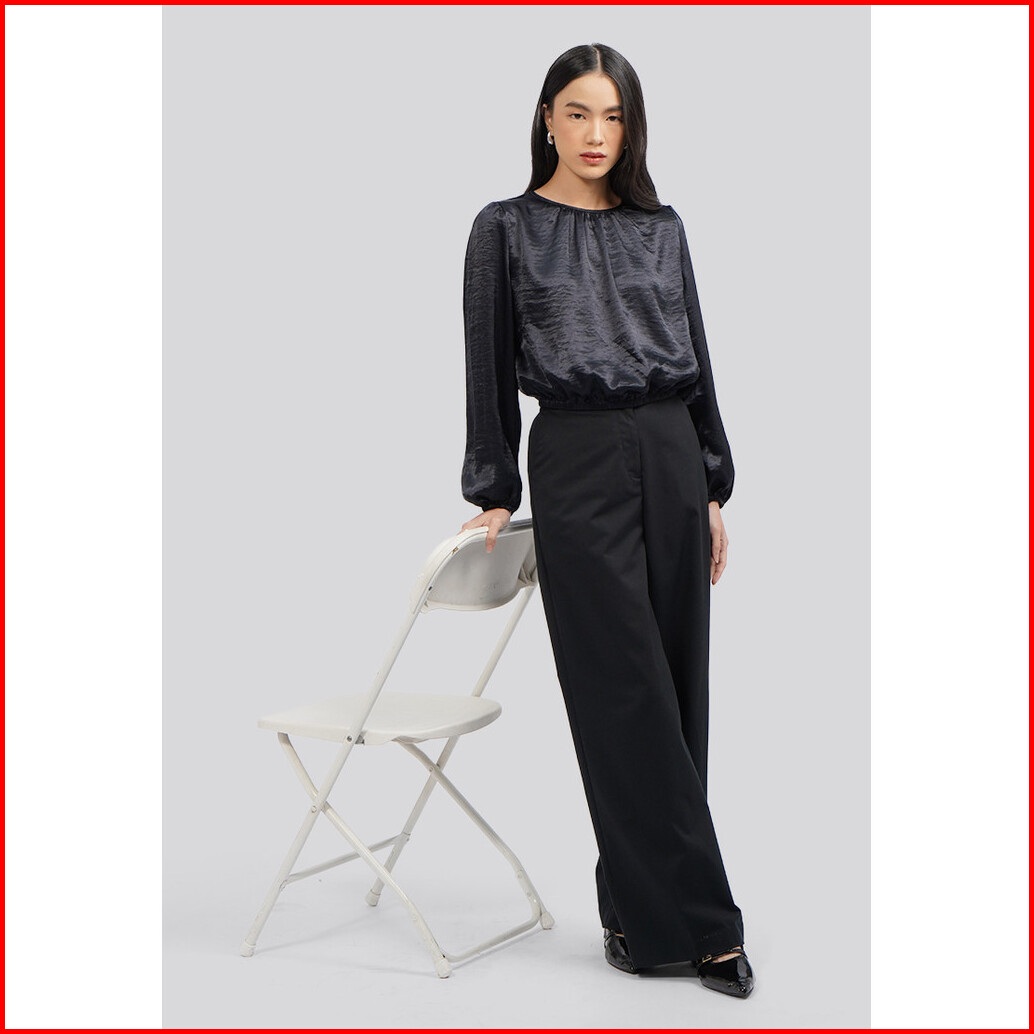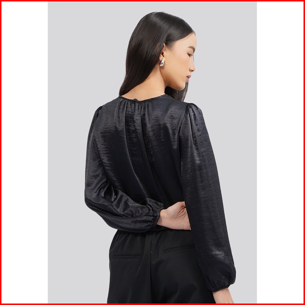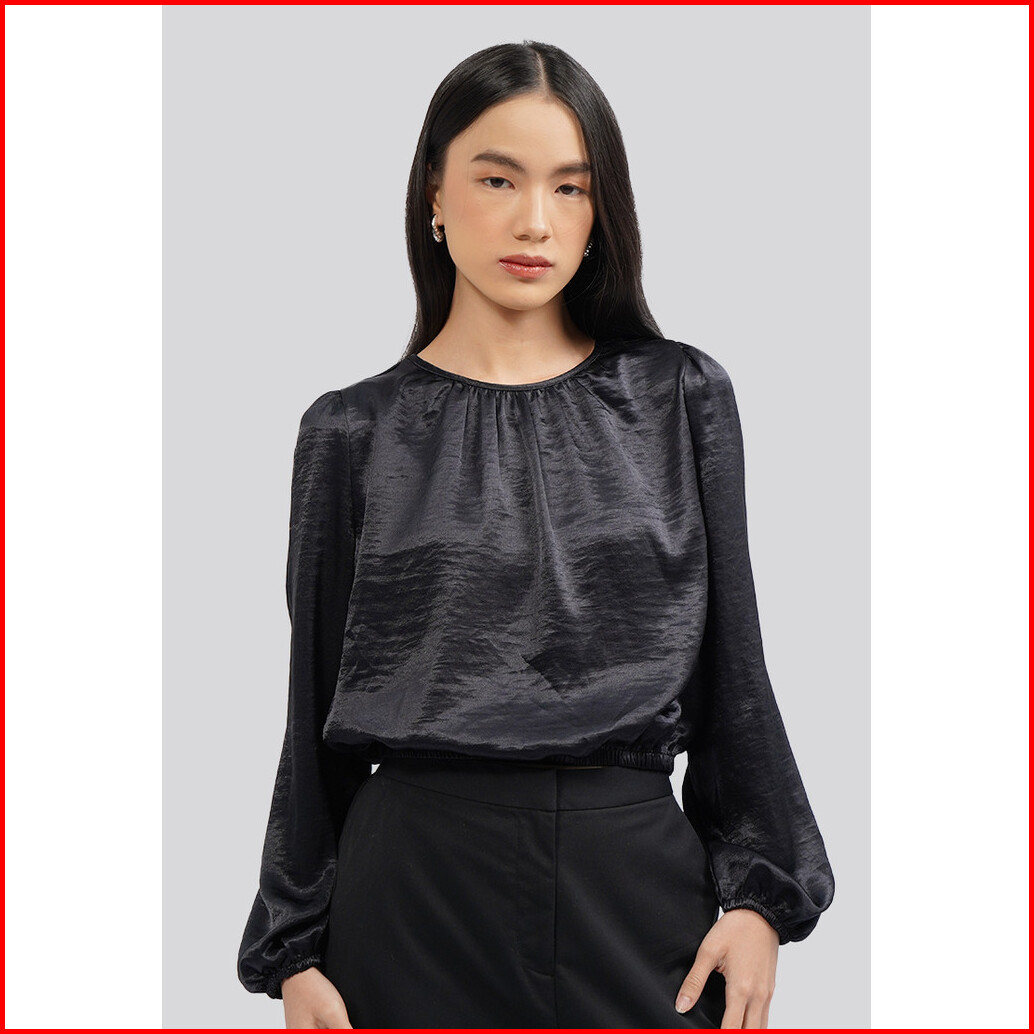Executive Long Sleeve Gathered Crop Blouse Black
