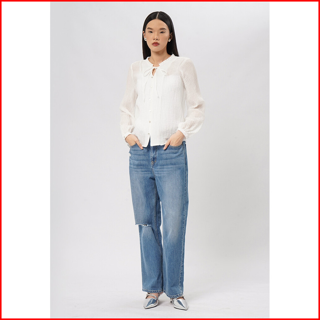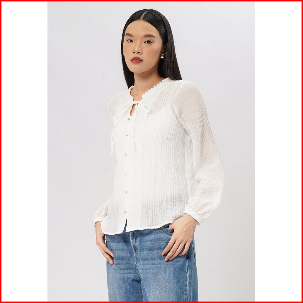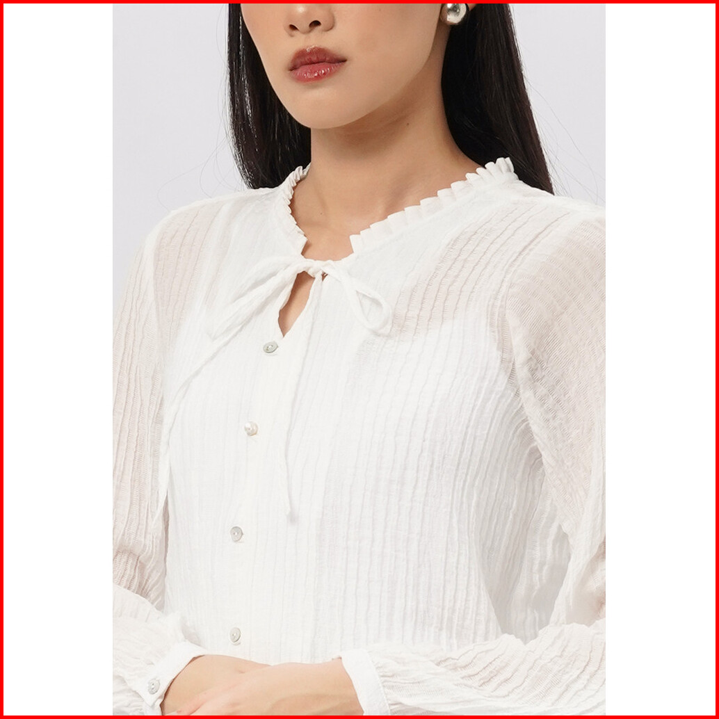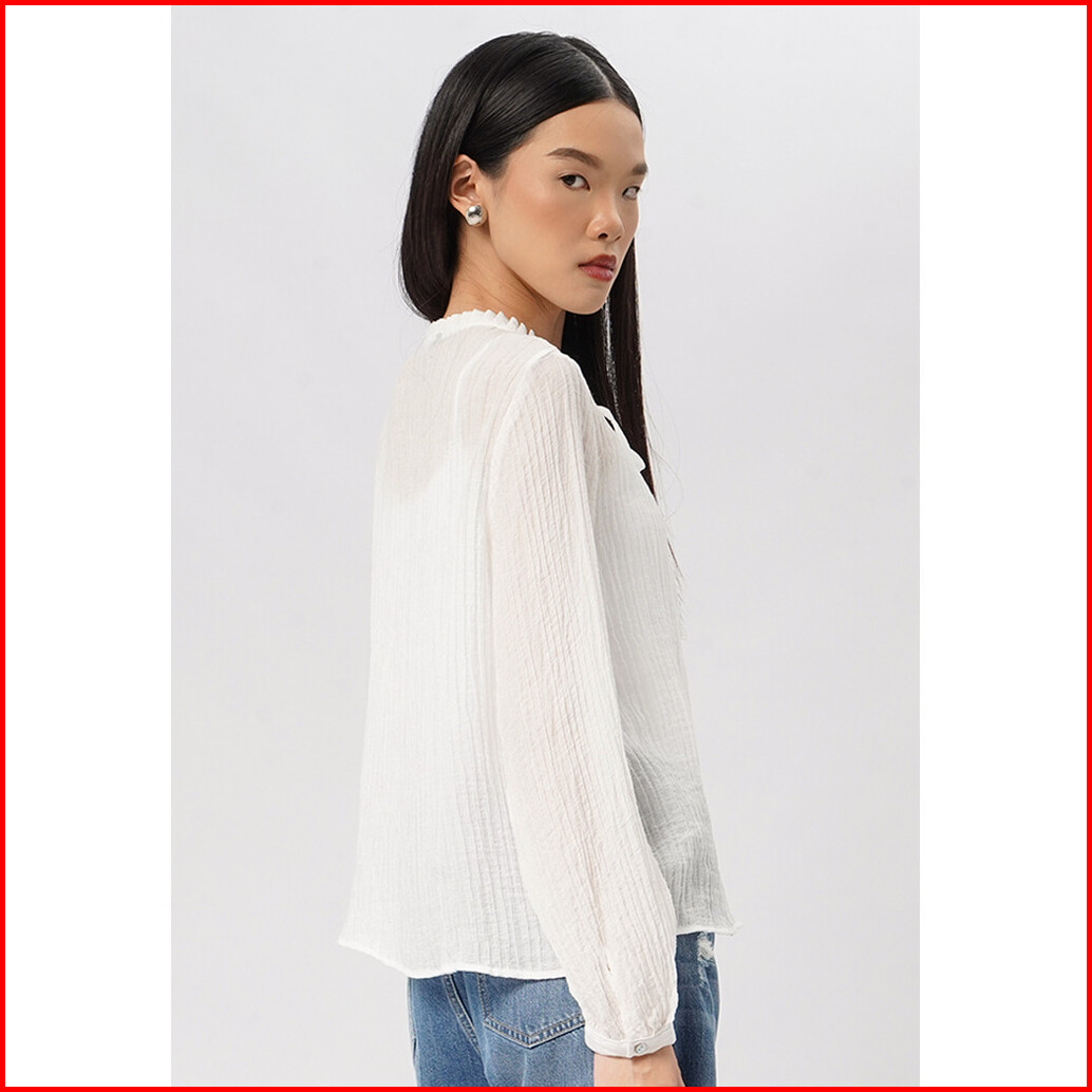 Executive Textured Long Sleeve V-neck Blouse Off White