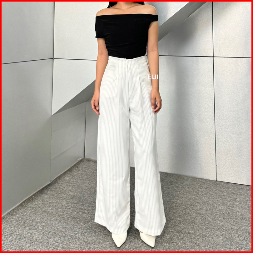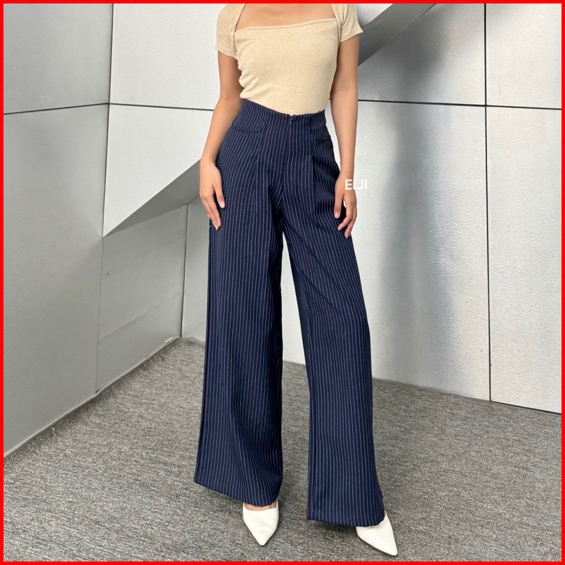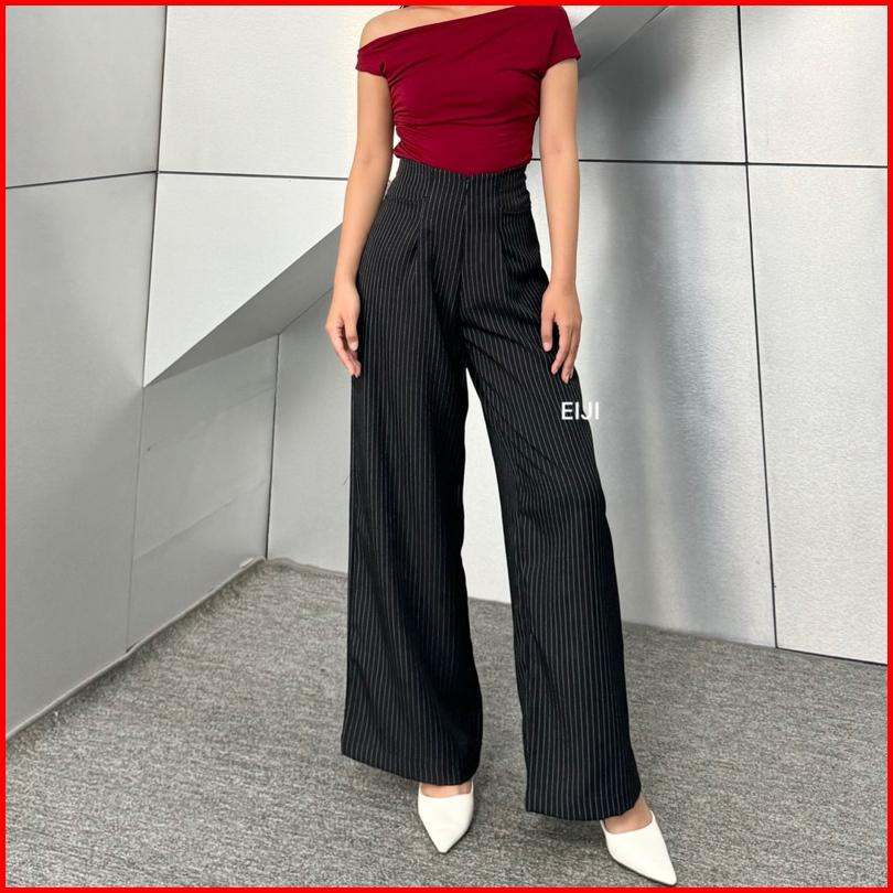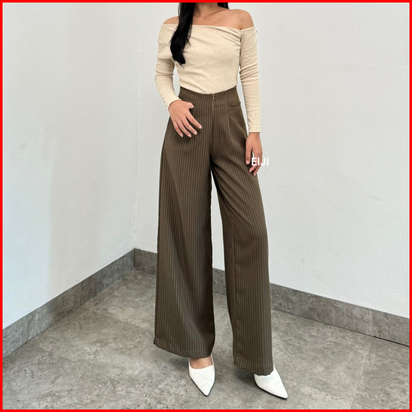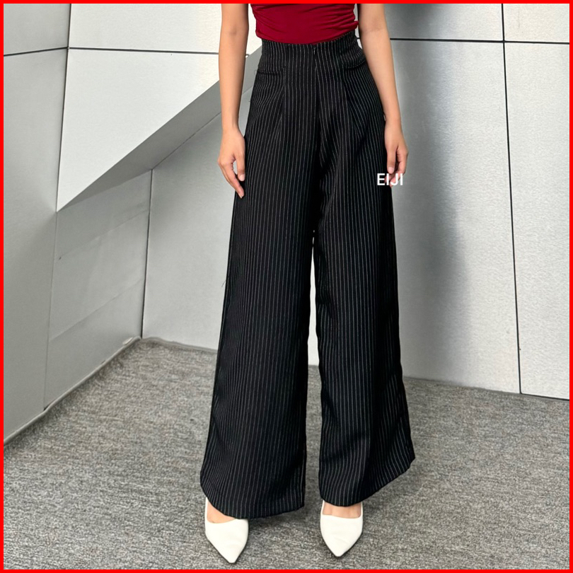 Eiji - Etta Pants Celana Baggy Wide Leg Kulot Semiwoll Stripe