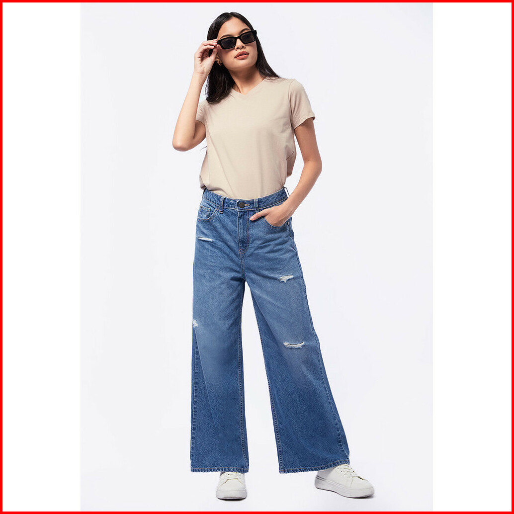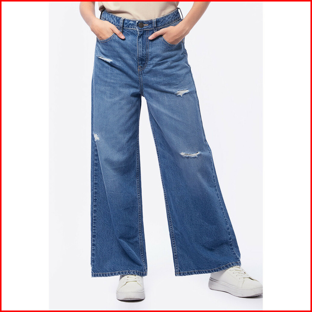Tirajeans Wideleg Destroy Denim Tlp504s41110f23 Med Blue