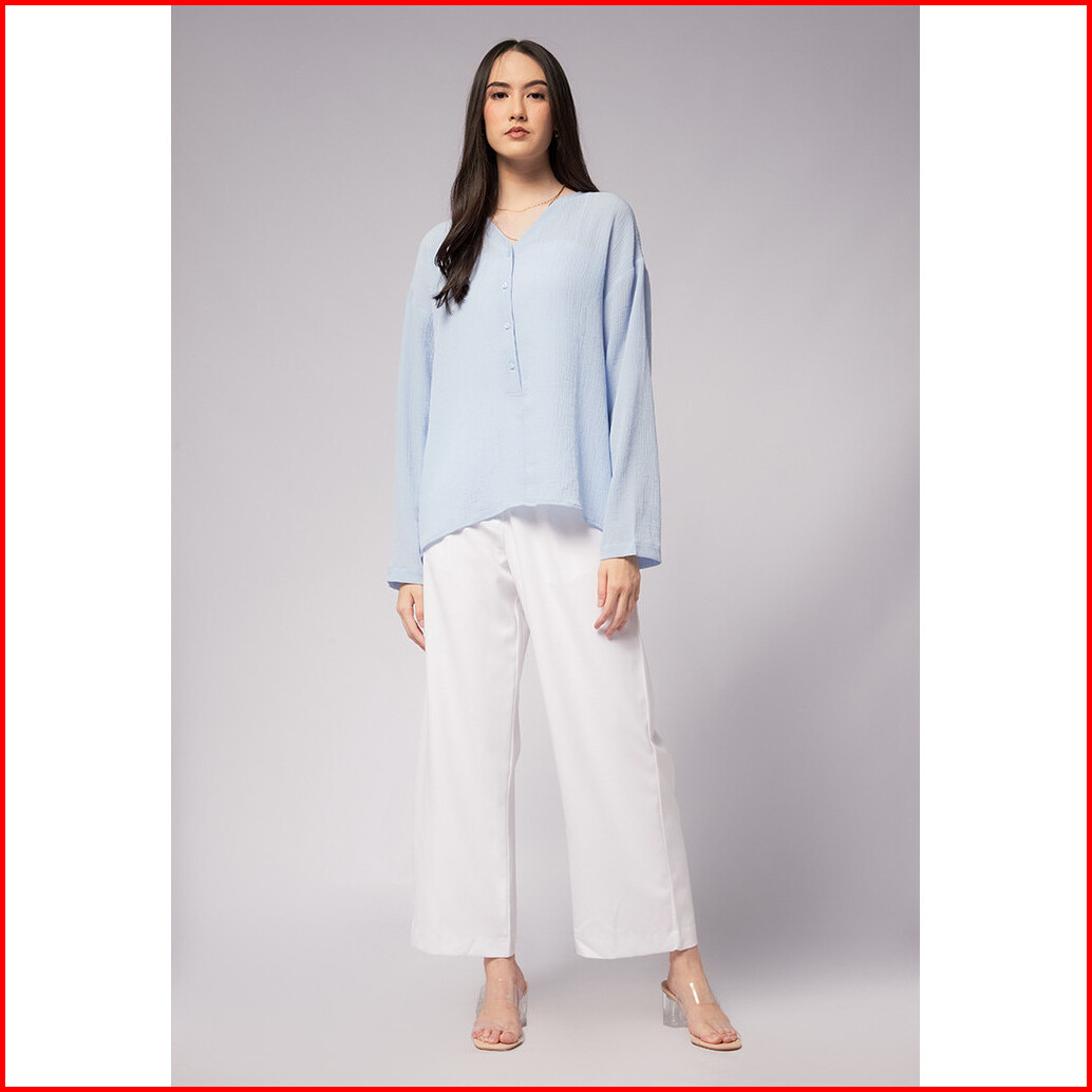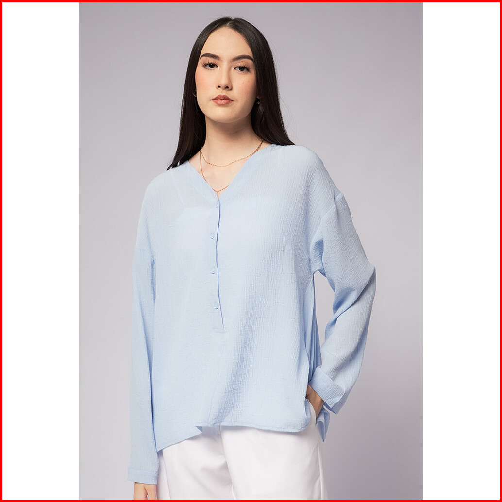 Executive V-neck Long Sleeve Blouse Lt. Blue