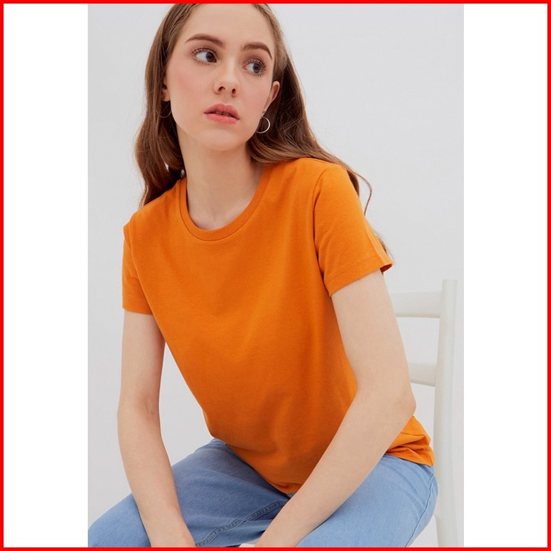Executive Basic Round Neck Cotton T-shirt Pumpkin