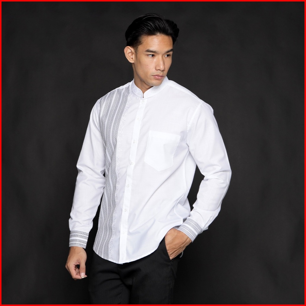 Casella Baju Koko Pria Lengan Panjang Arabesque Combination Design Series 9929 White