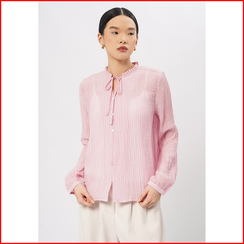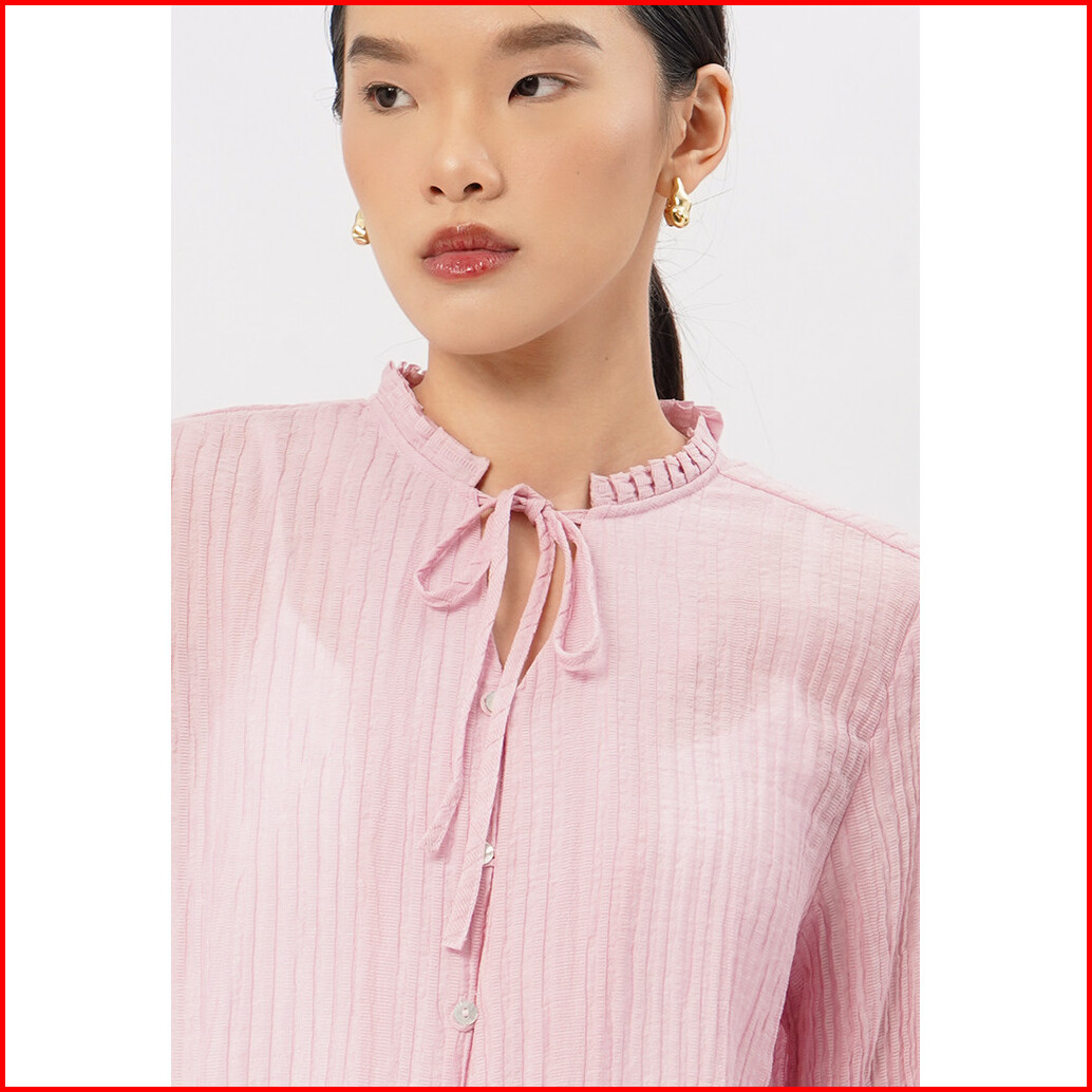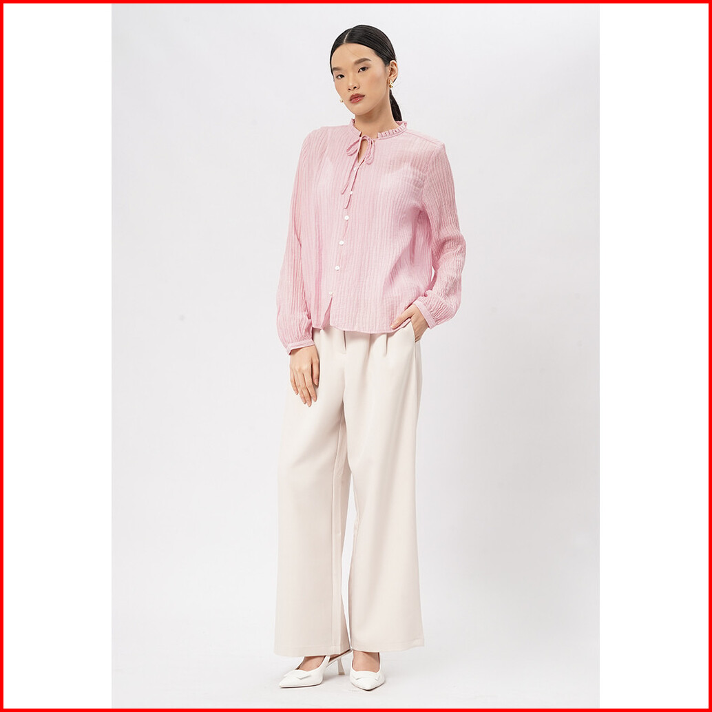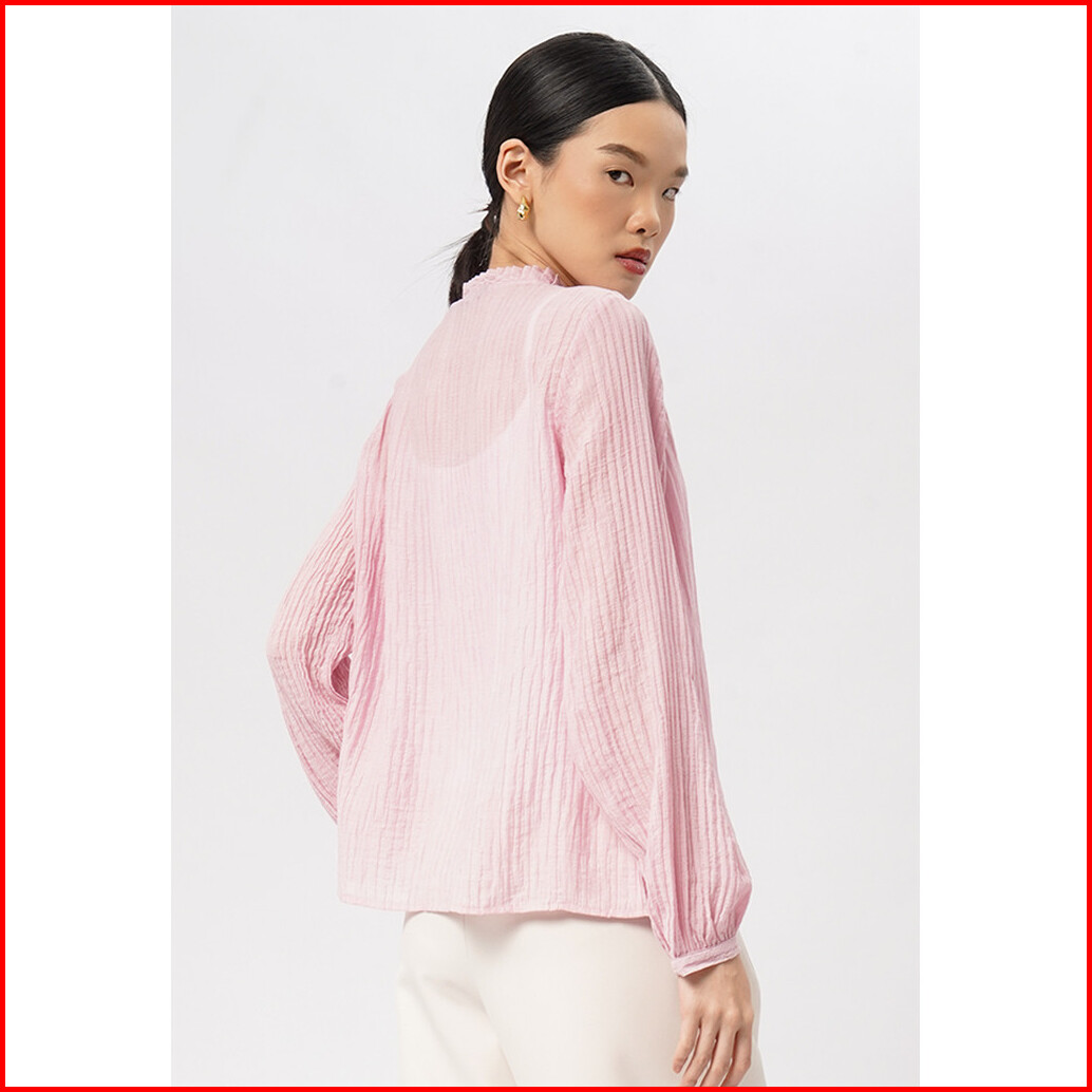 Executive Textured Long Sleeve V-neck Blouse Pink