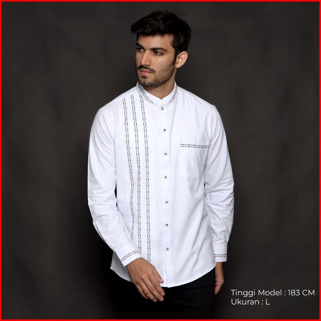 Casella Baju Koko Pria Lengan Panjang Exclusive Baju Koko Azhar Lengan Panjang 9943 White