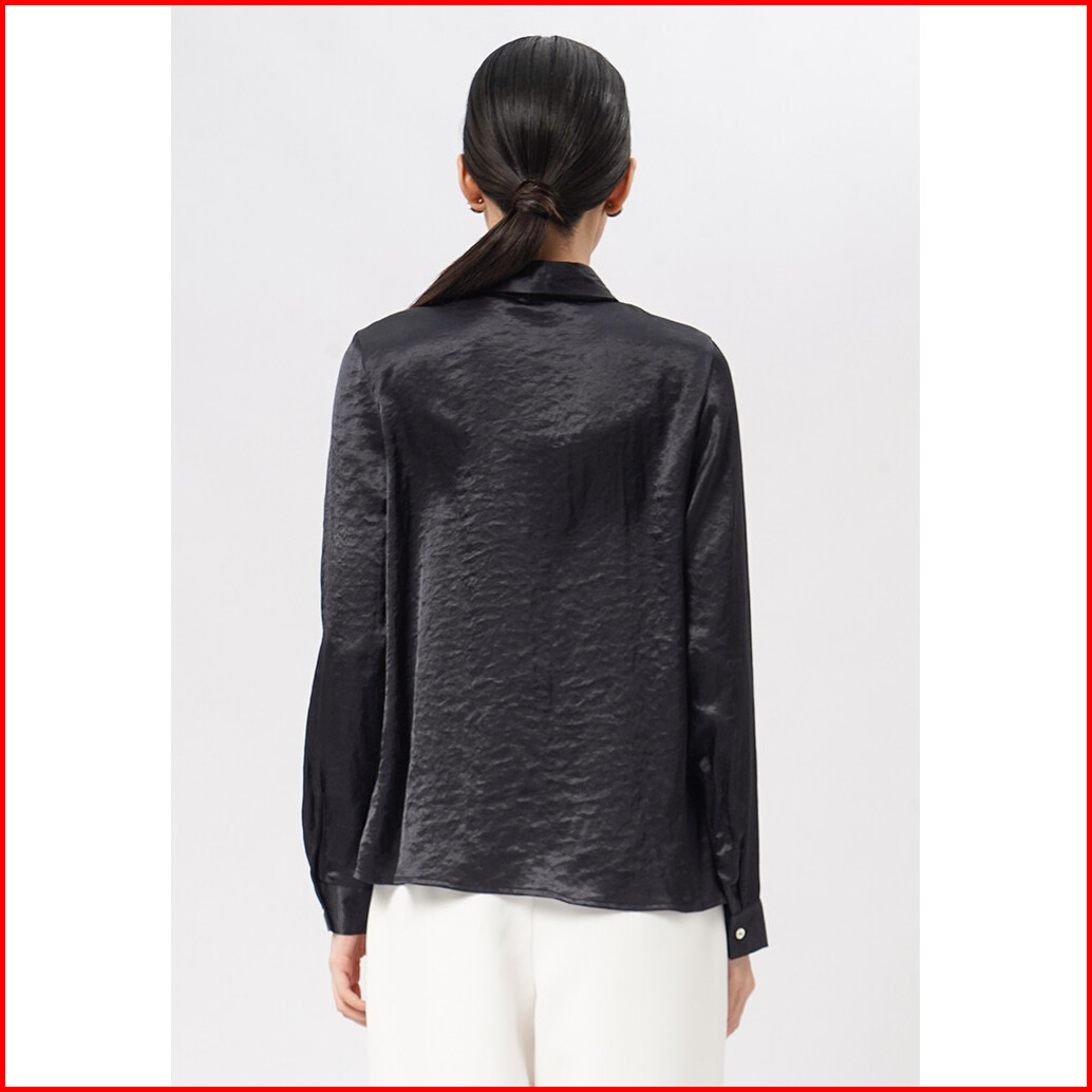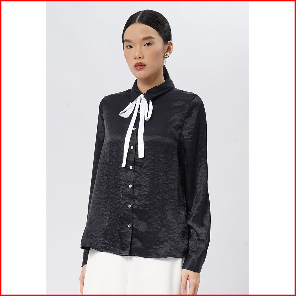 Executive Long Sleeve Blouse With Contrast Ribbon Black