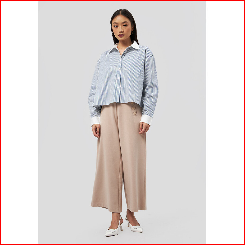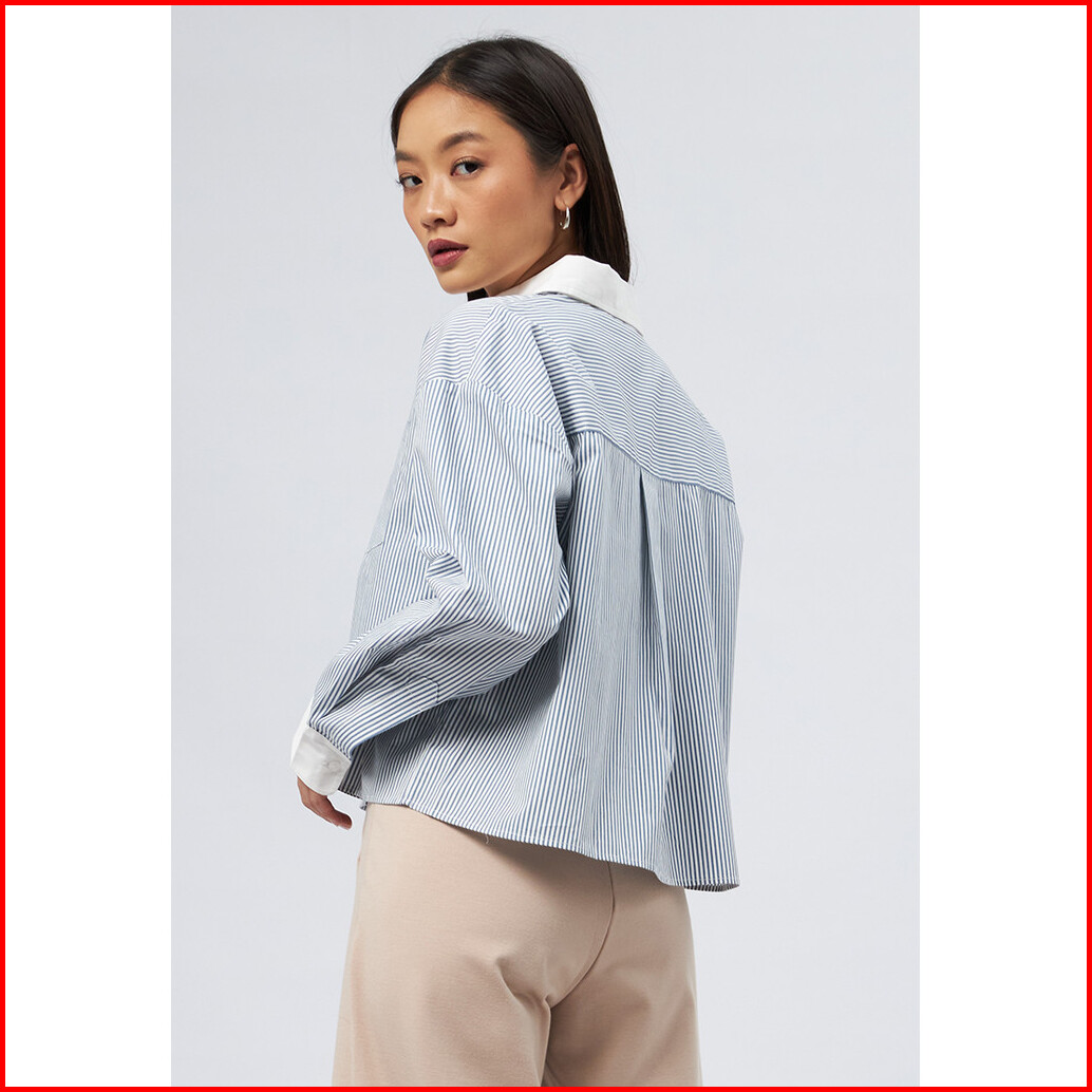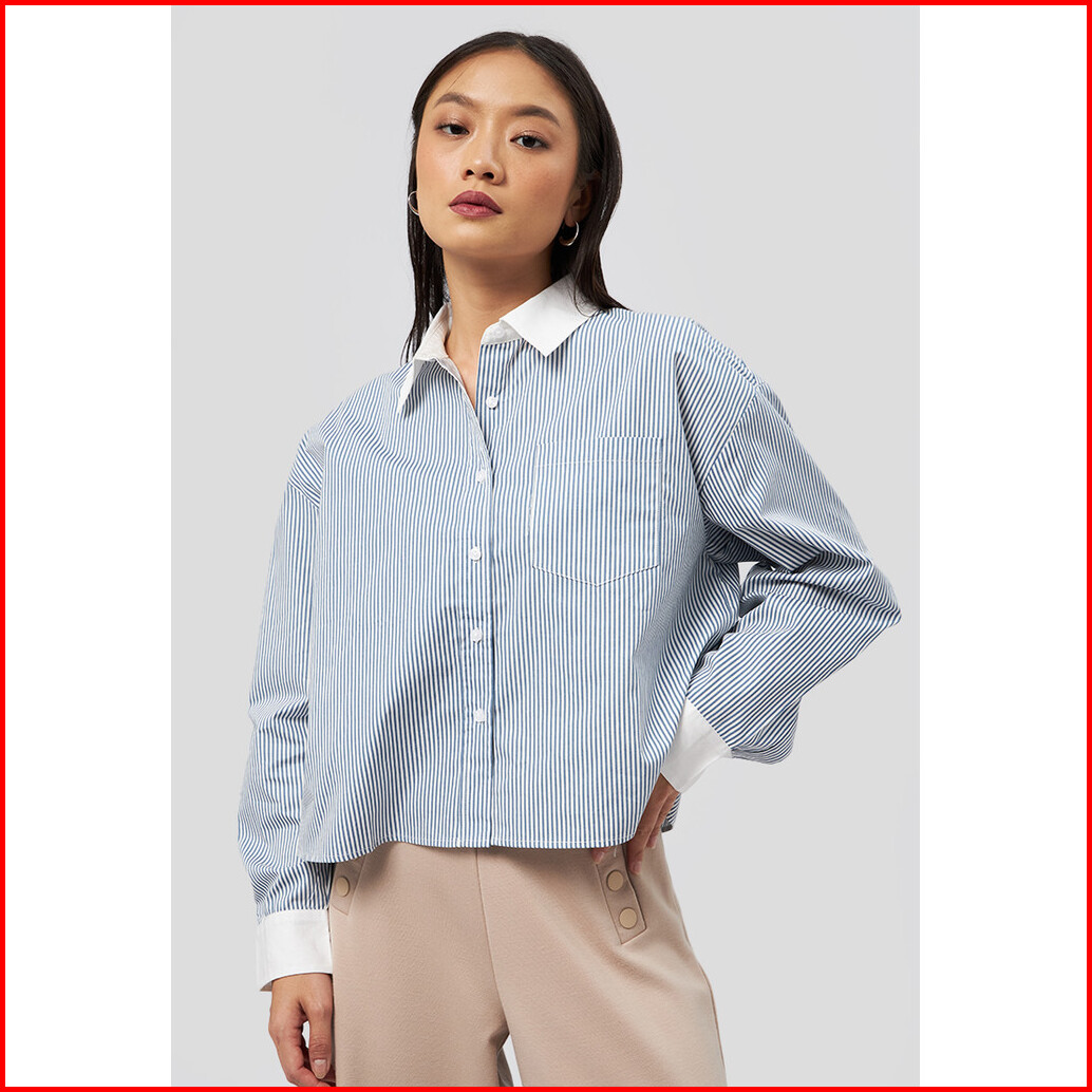 Executive Long Sleeve Stripes Crop Shirt Blue