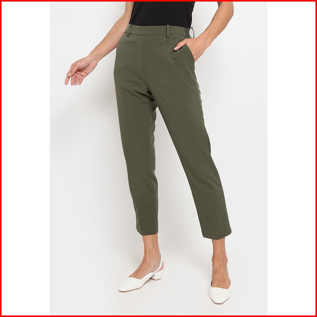 Executive Basic Tapered High Rise Boston Editor Pants Olive