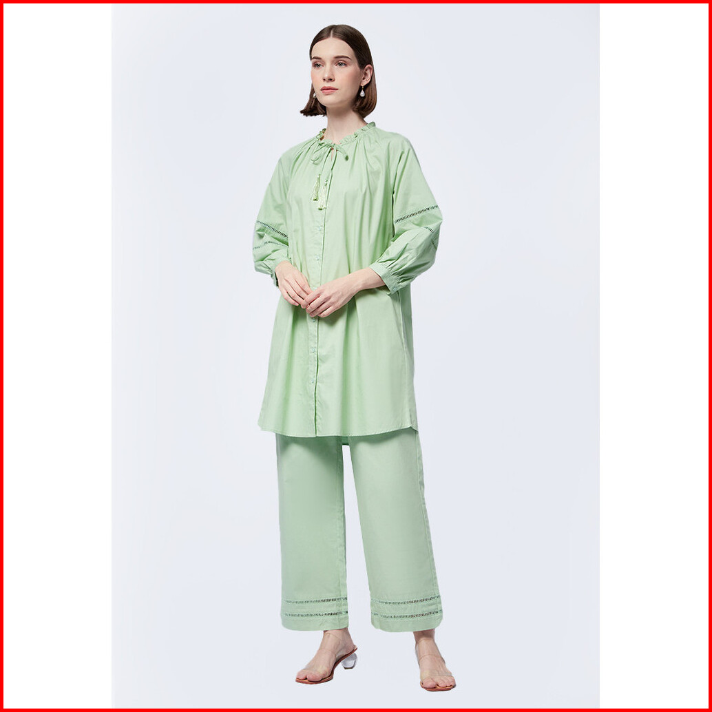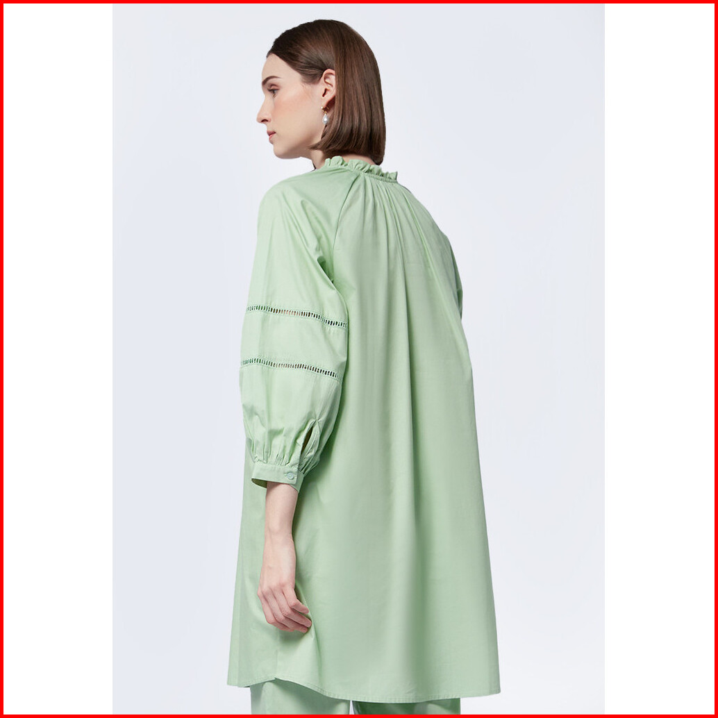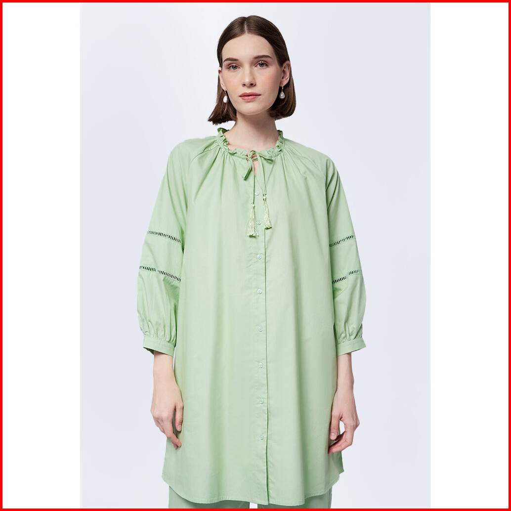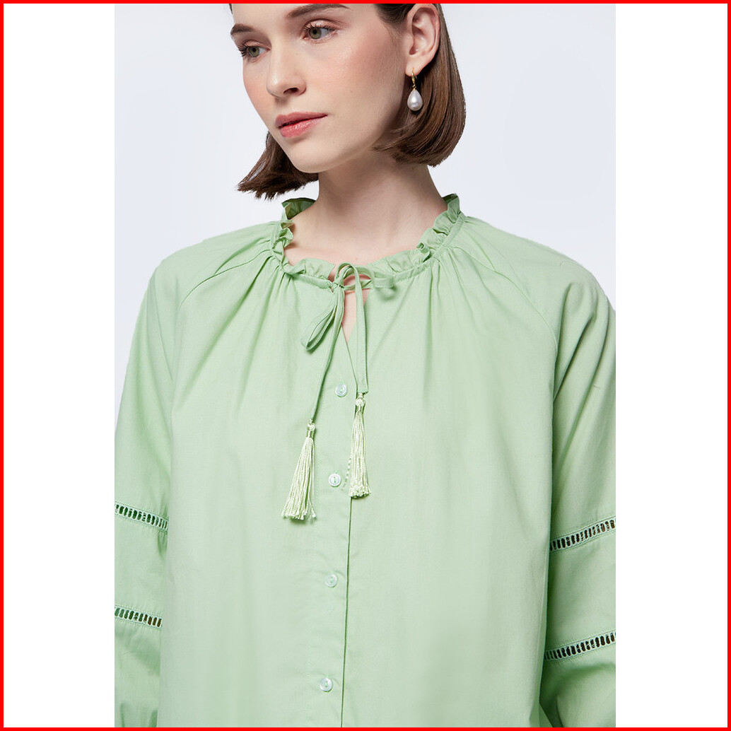Executive Puff Sleeve Lace Tunic With Tassel Mint