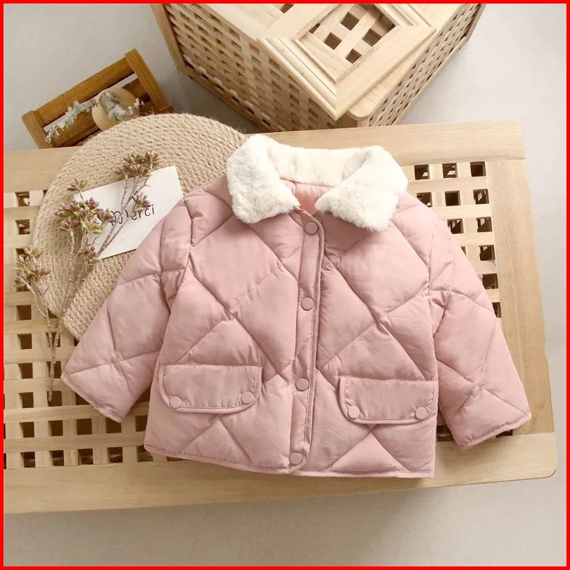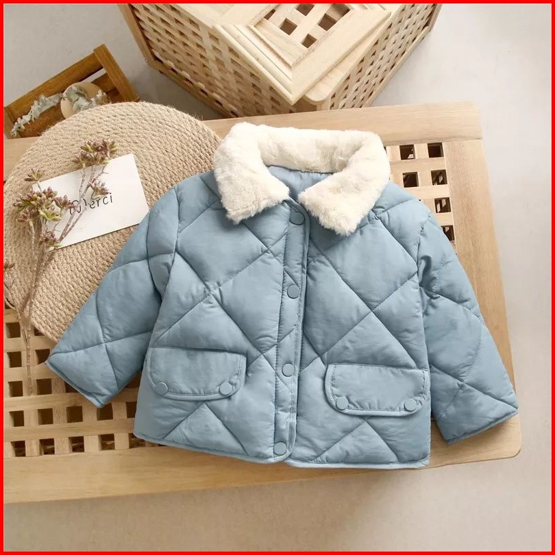 Kafabih Jaket Anak Puffer Motif Ketupat Warna Hitam Biru Soft Pink Kuning 1-12 Tahun