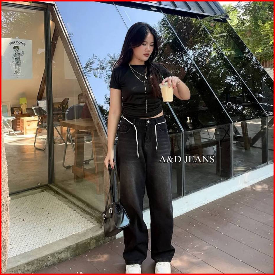 Jinny.id Highwaits Loose Adjustable Baggy Under Age Jeans Celana Jeans Wanita
