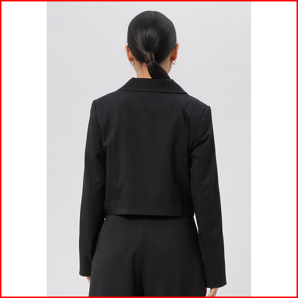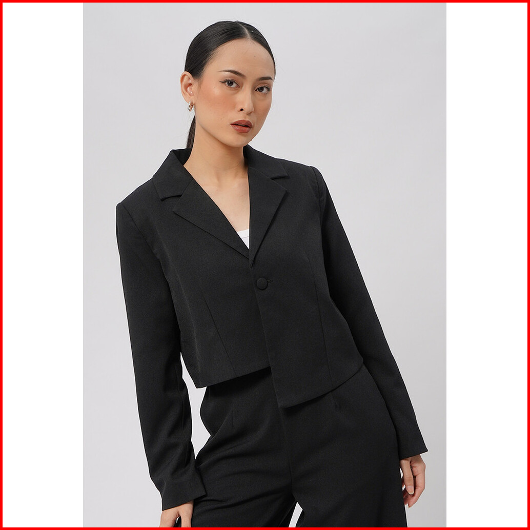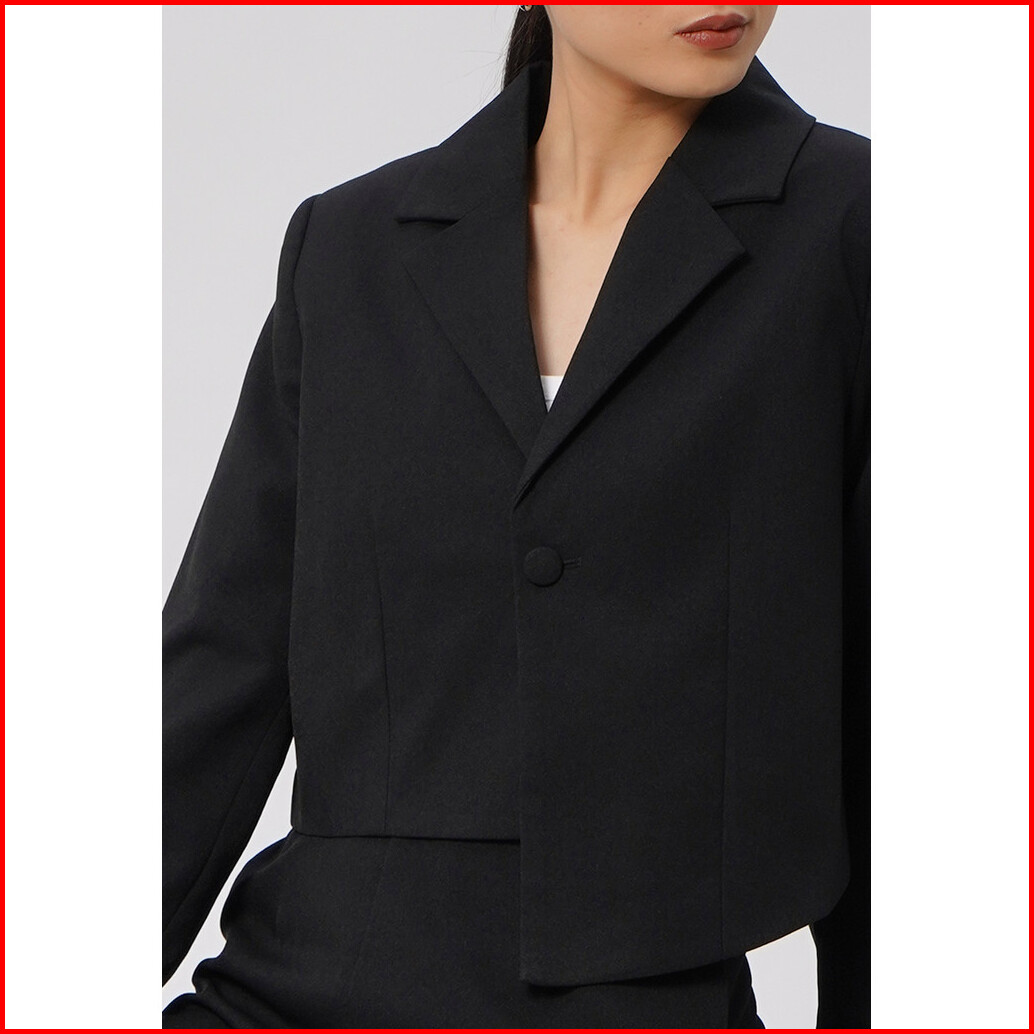 Executive Asymmetrical Long Sleeve Crop Blazer Black