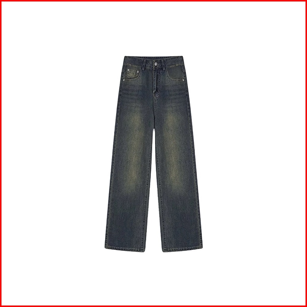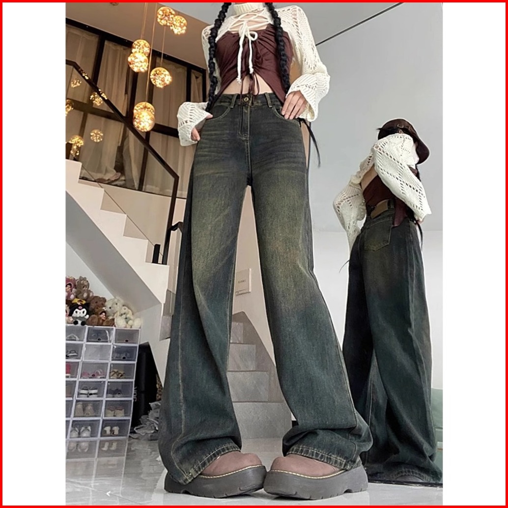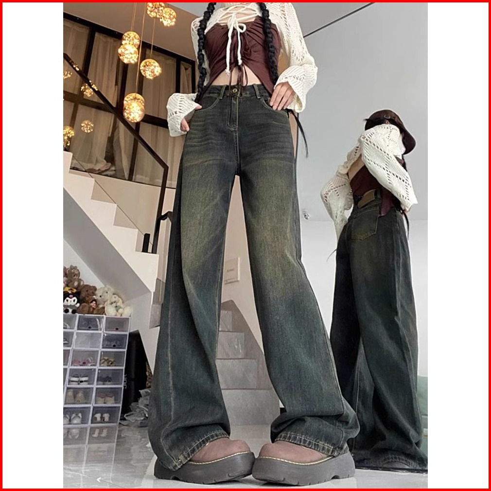 New High Waist Celana Jeans Wanita Korean Style Boyfriend Celana Kulot Retro Abu-abu Loose Jeans