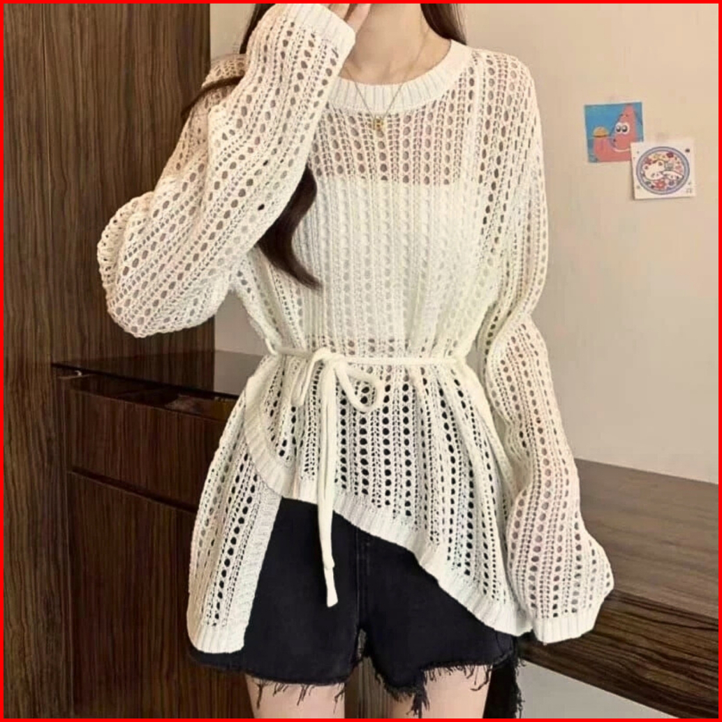 Zie Atasan Sweater Rajut Wanita Jaring Tali - Outer Knit Tali Korean Style By Raqi Knitwear
