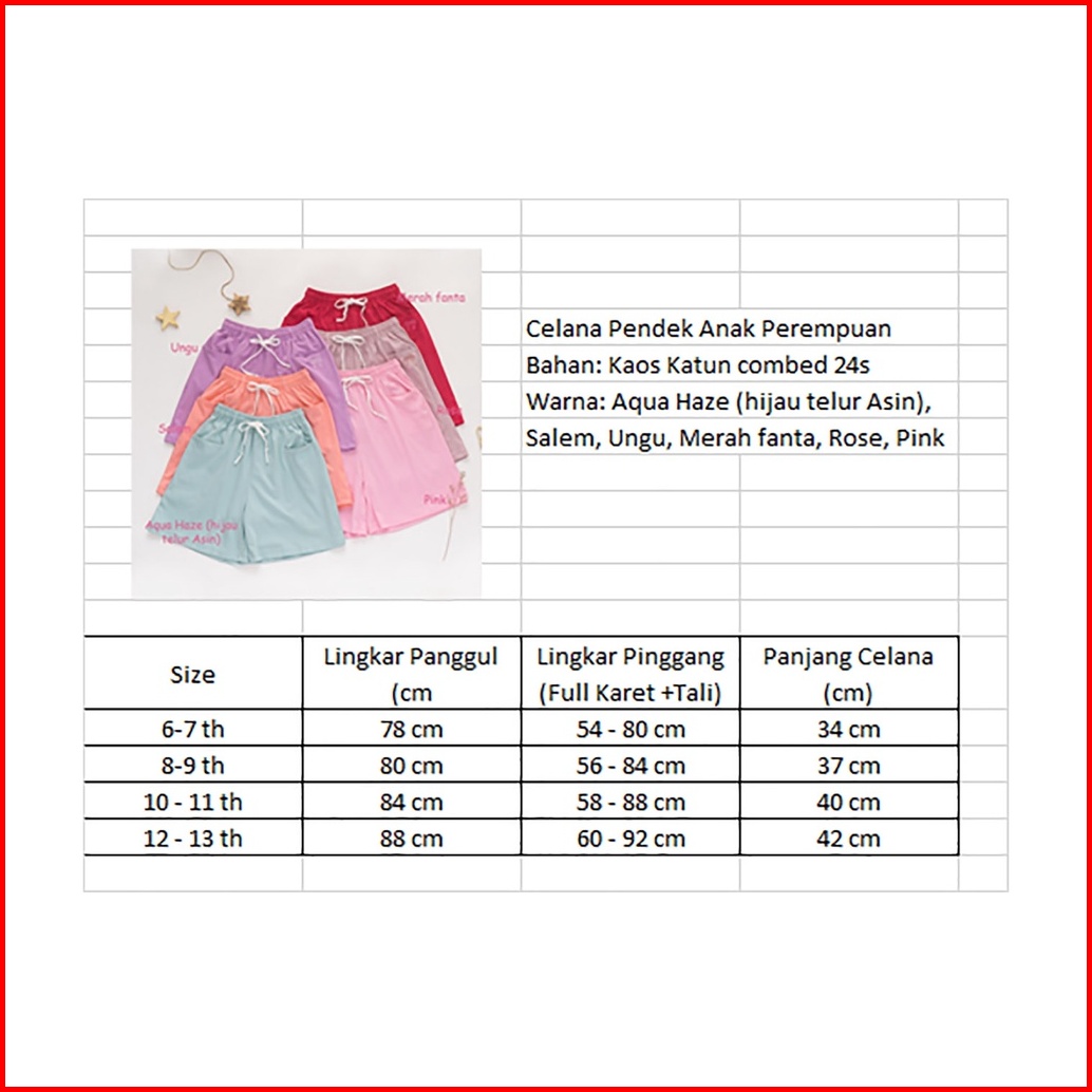 Bawahan Celana Pendek Kaos Santai Tidur Harian Anak Perempuan Remaja Cewek Tanggung 6 8 10 12 Tahun