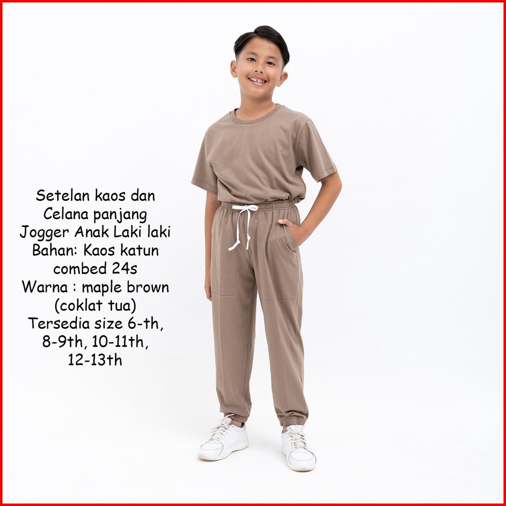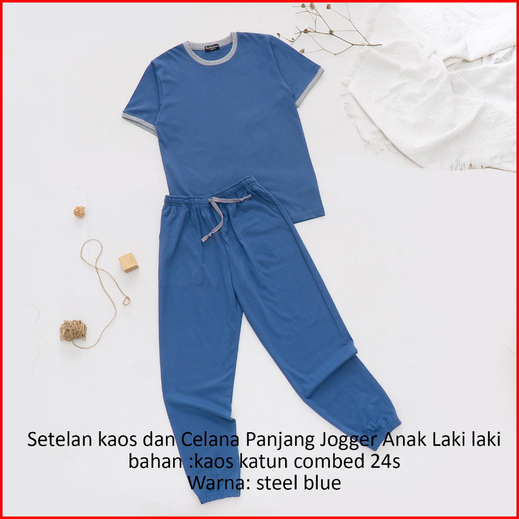 Setelan Baju Kaos Basic Polos Lengan Pendek Celana Jogger Anak Laki Laki Remaja Tanggung 6 8 10 12