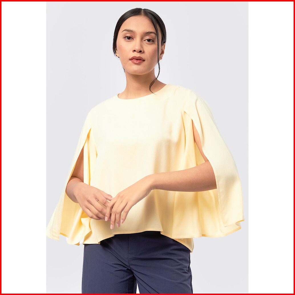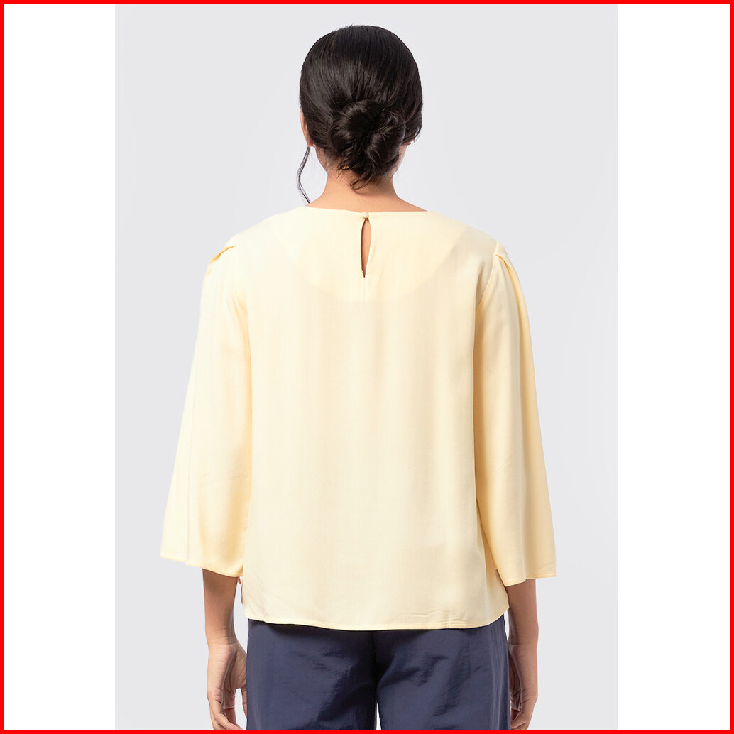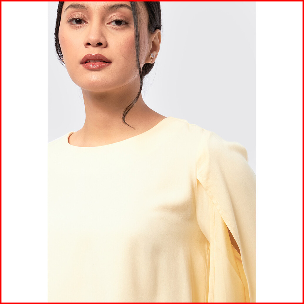 Executive Round Neck Blouse With Sleeve Slit Yellow