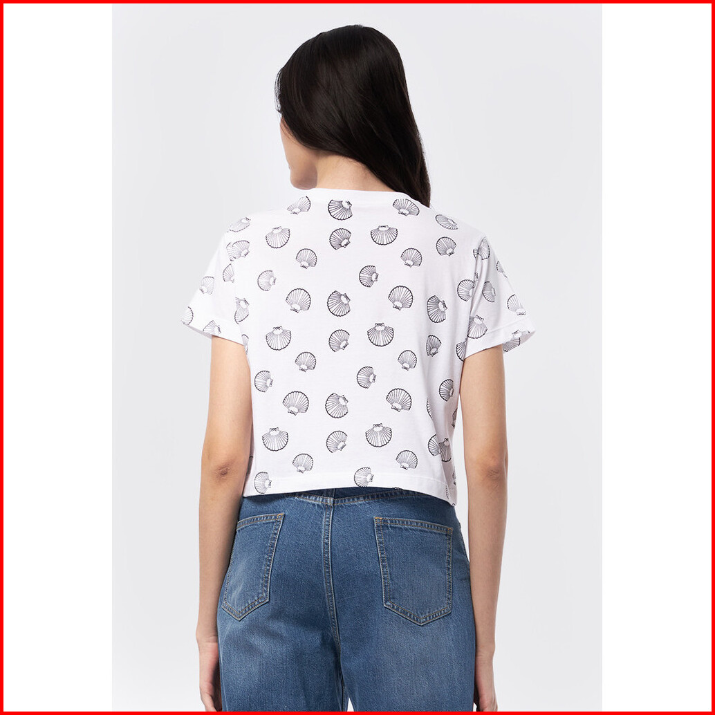 Executive Full Printed Short Sleeve Crop Tee Off White