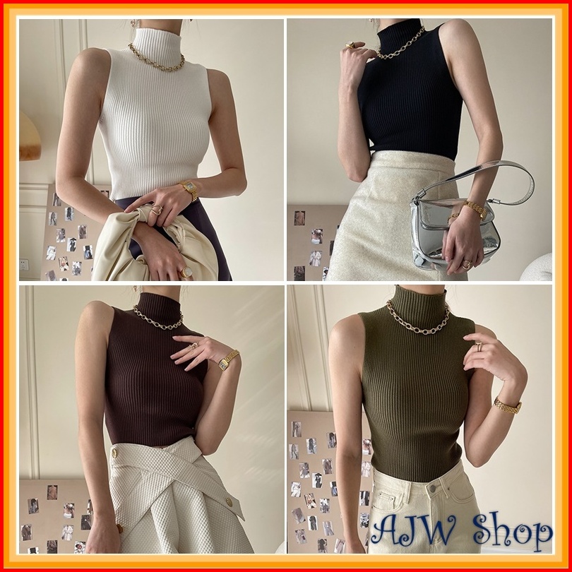 Ajw Inner Rajut Turtleneck Tanpa Lengan Premium Import Bahan Halus Dan Adem Ra Iner Dress Tanpa Lengan Impor Manset Tanp