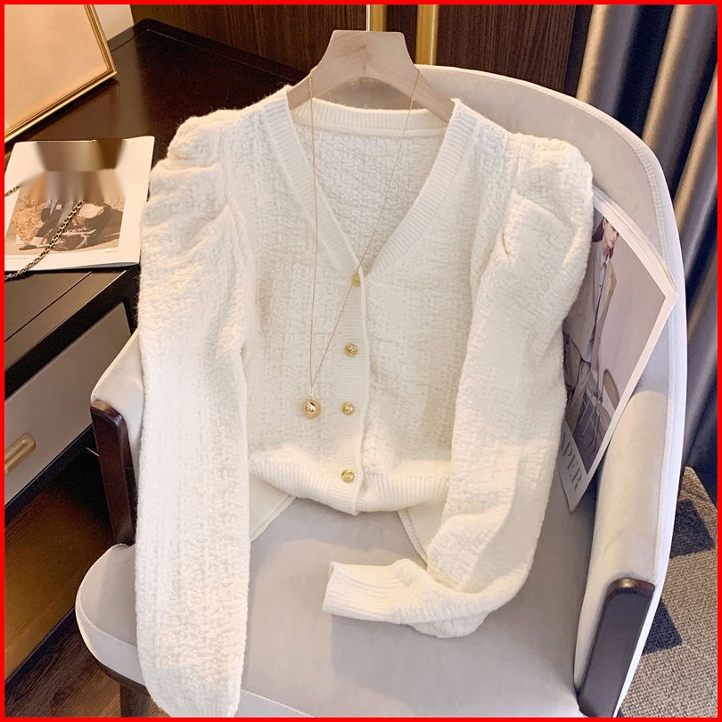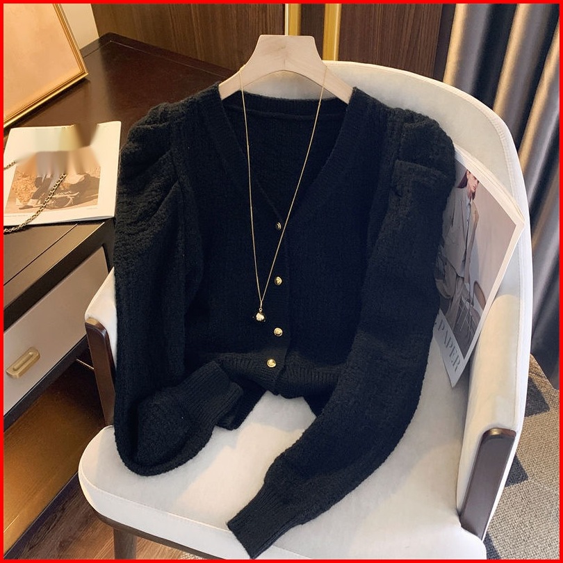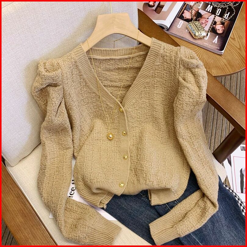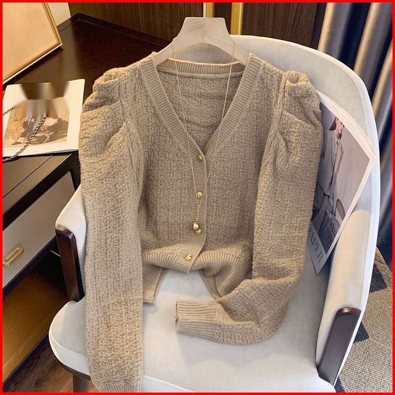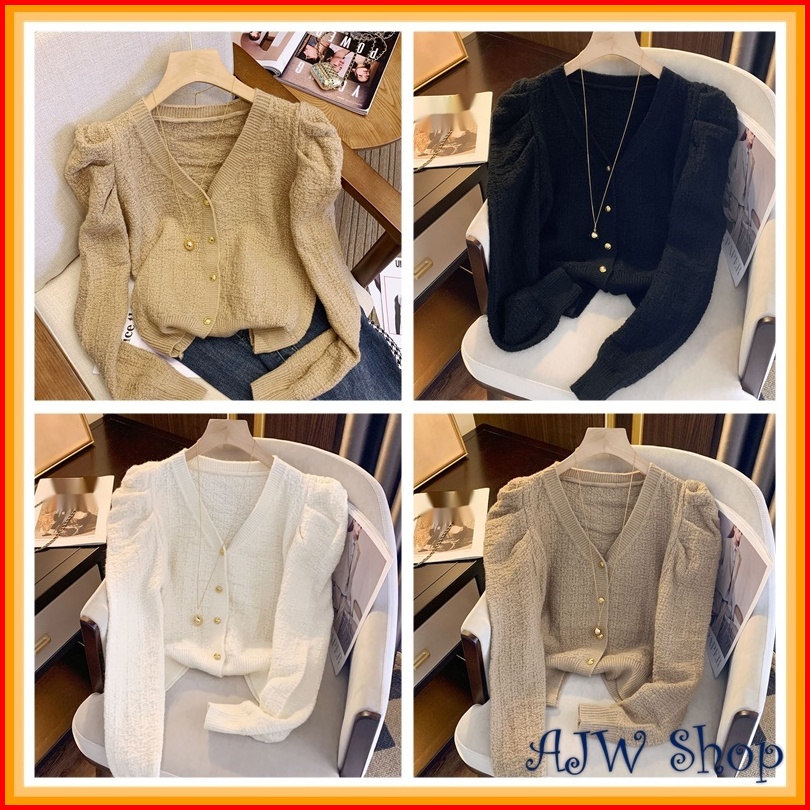 Ajw Cardigan Knitting Stitches Puffy Knit Premium Rat Atasan Rajut Wanita Knitting Stitches Puffy Korean Style Cardigan