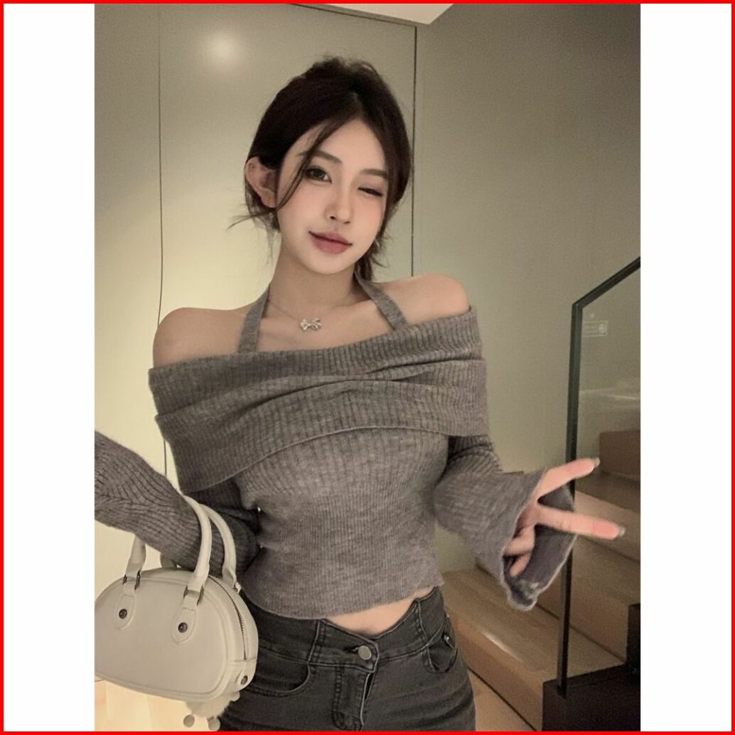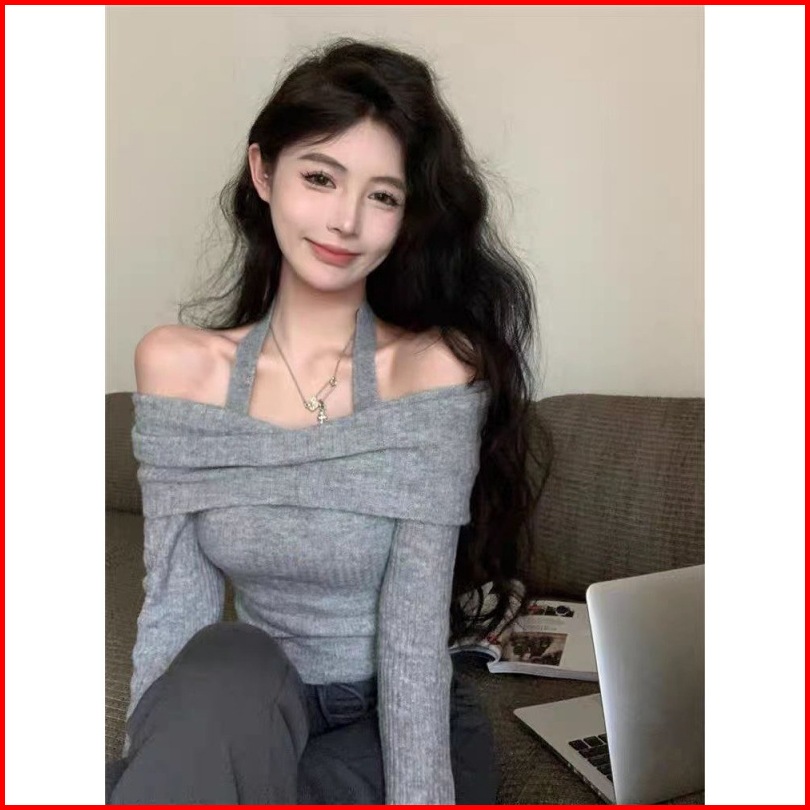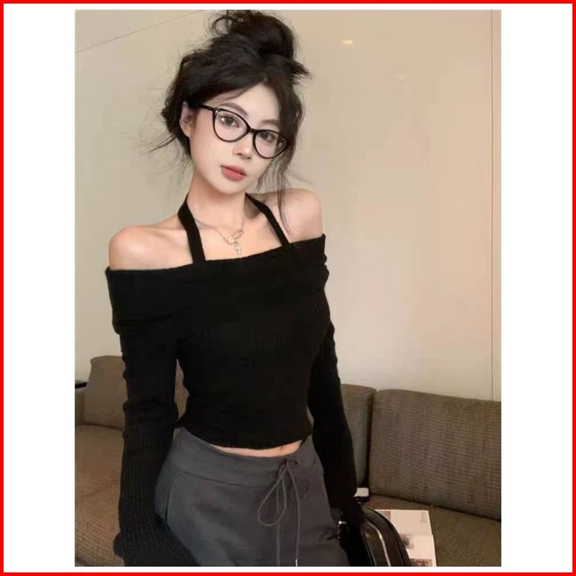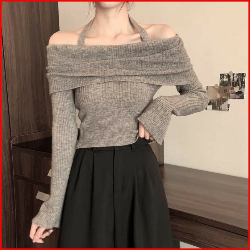 Ajw Atasan Wanita Sabrina Cutt Off Tali Leher Knit Premium Xeg Baju Wanita Rib Sabrina Cutt Off Tali Leher Rajut Premium