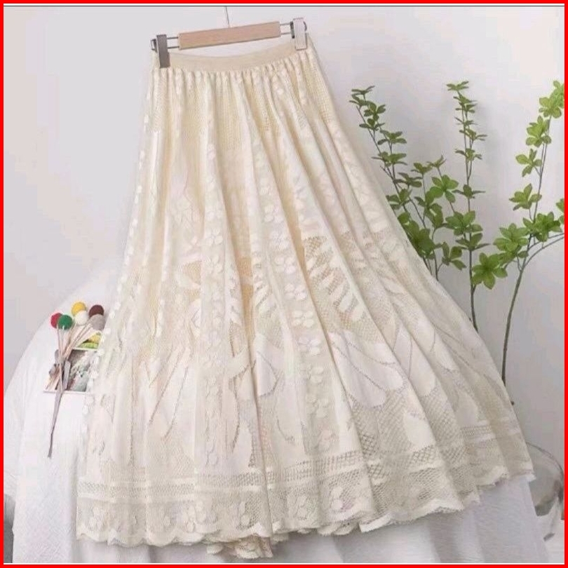Jesa Rok Brukat Renda Lace Panjang Wanita Import Premium Rok Brokat Brocade Skirt