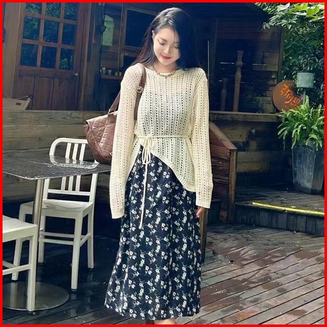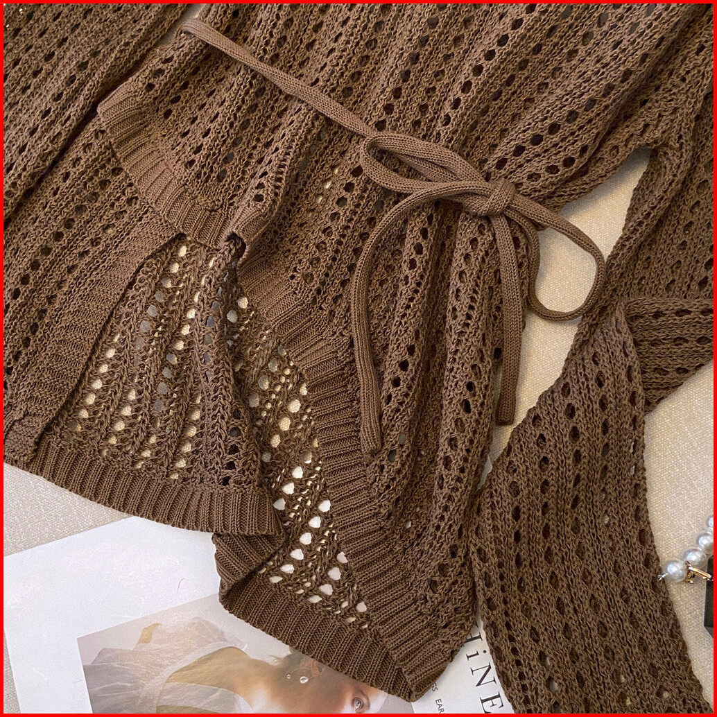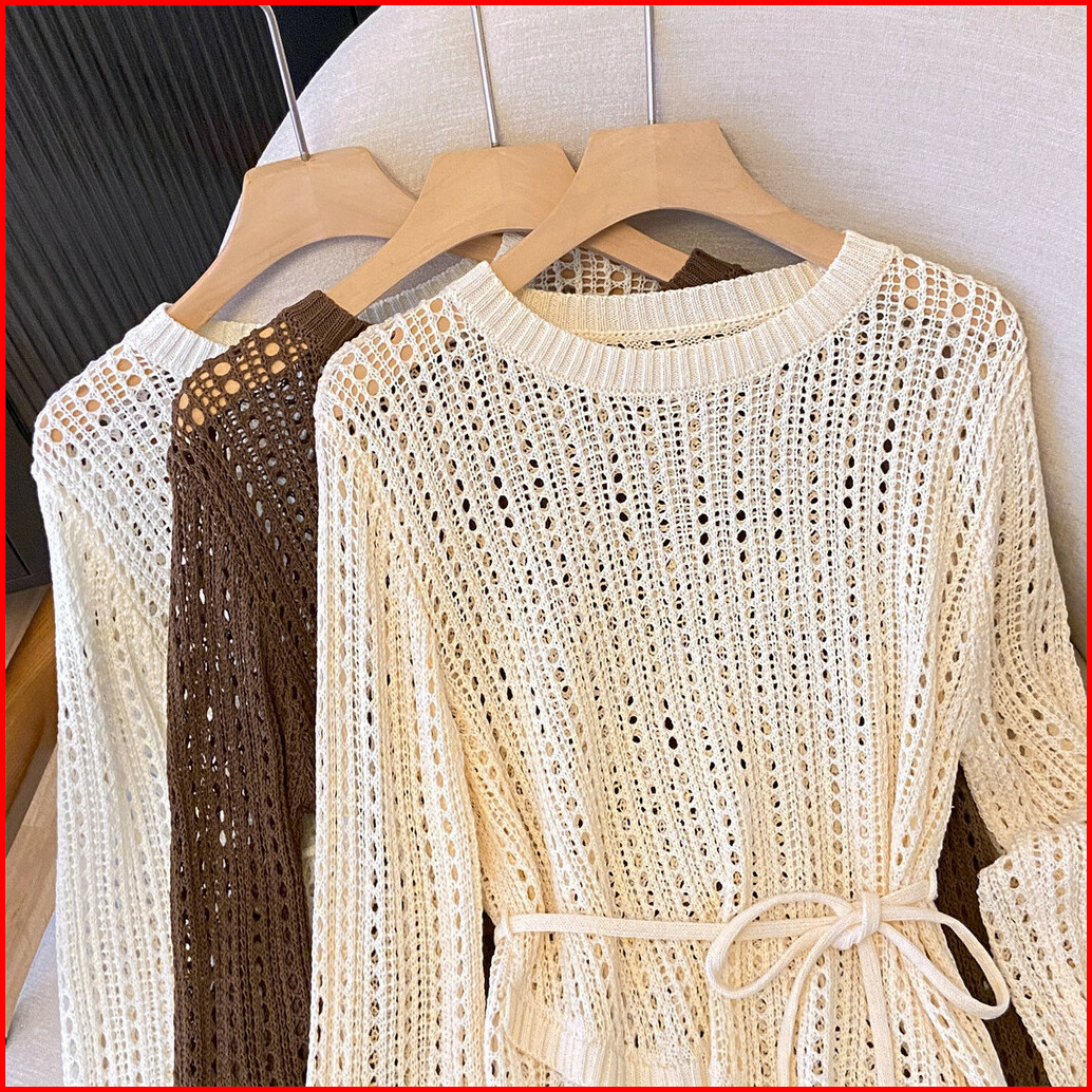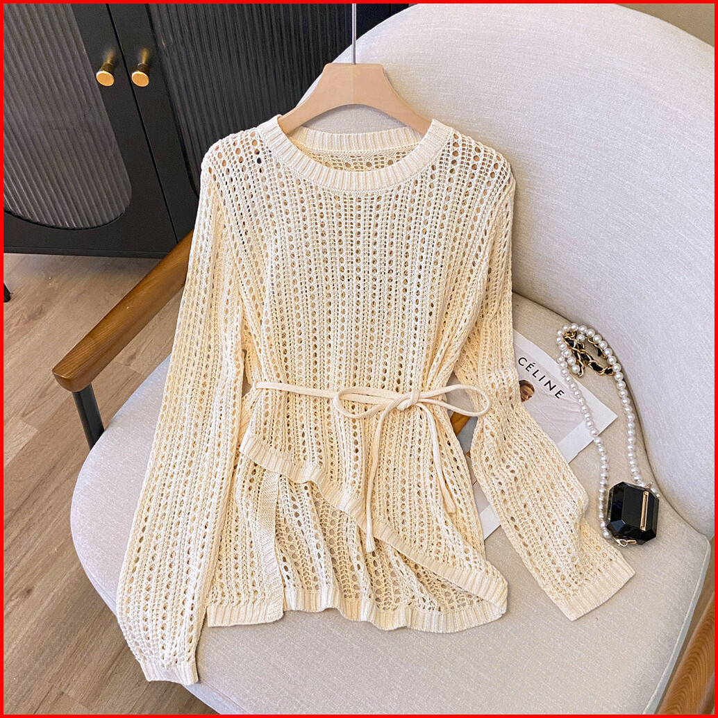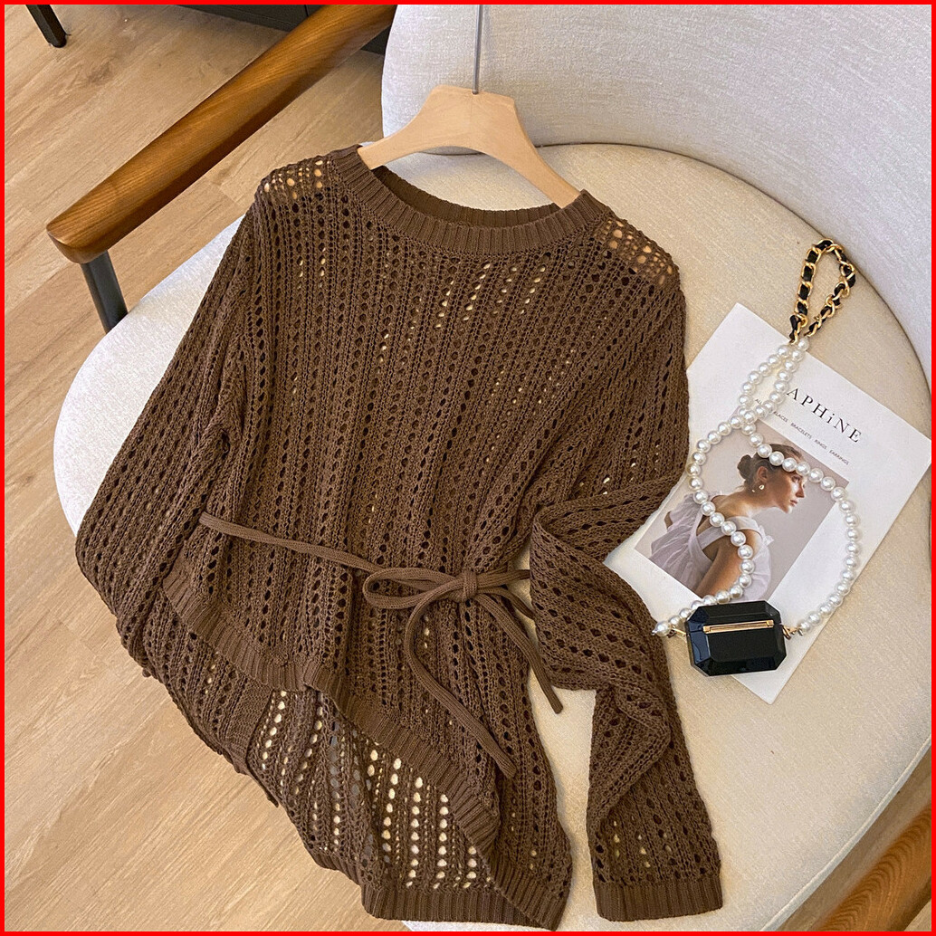 Yuruma Sweater Rajutan Berongga Penutup Pelindung Sinar Matahari Sweater Rajutan Lengan Panjang Tidak Beraturan