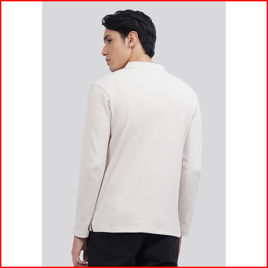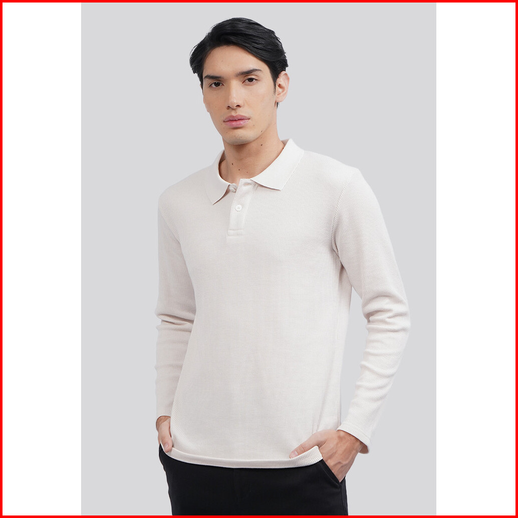 Executive Long Sleeve Textured Polo Shirt Beige