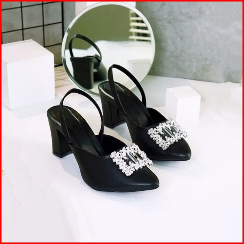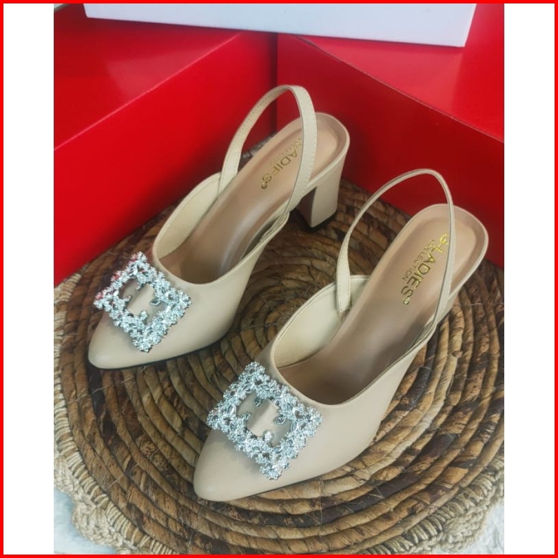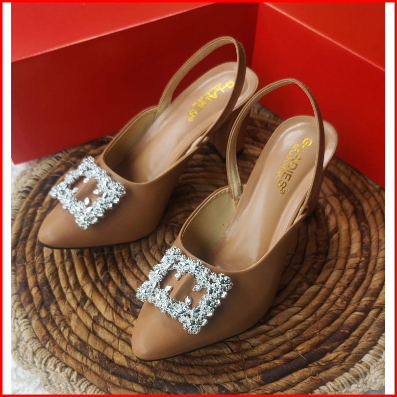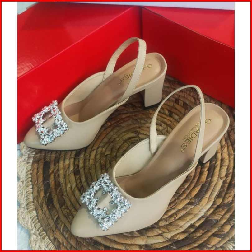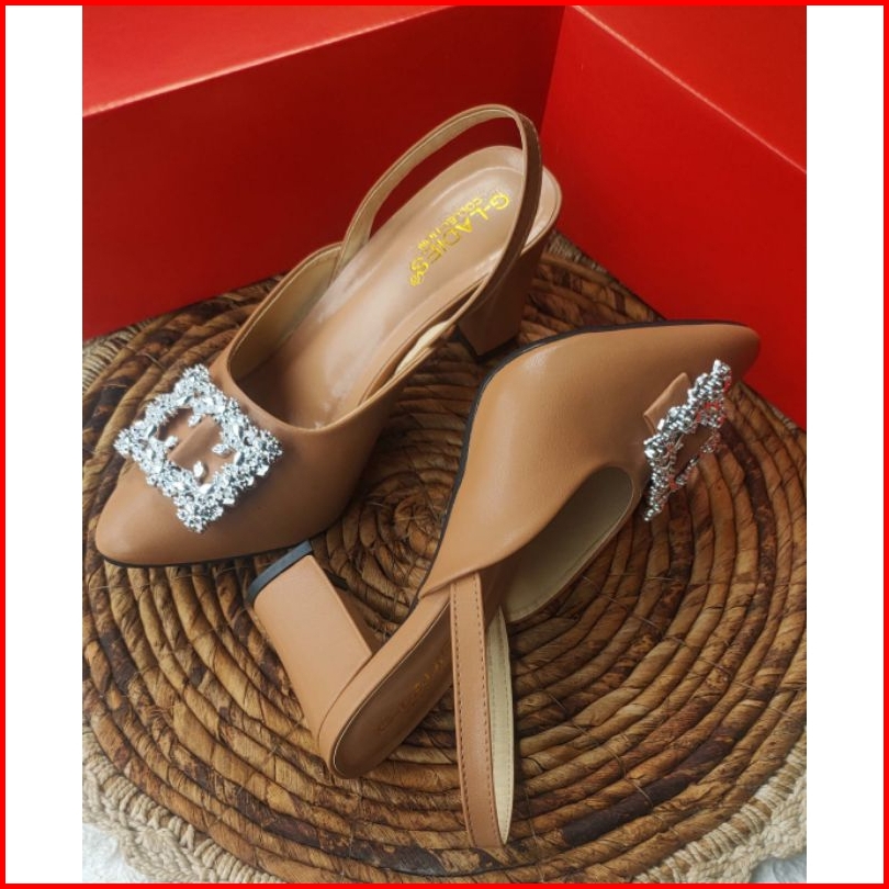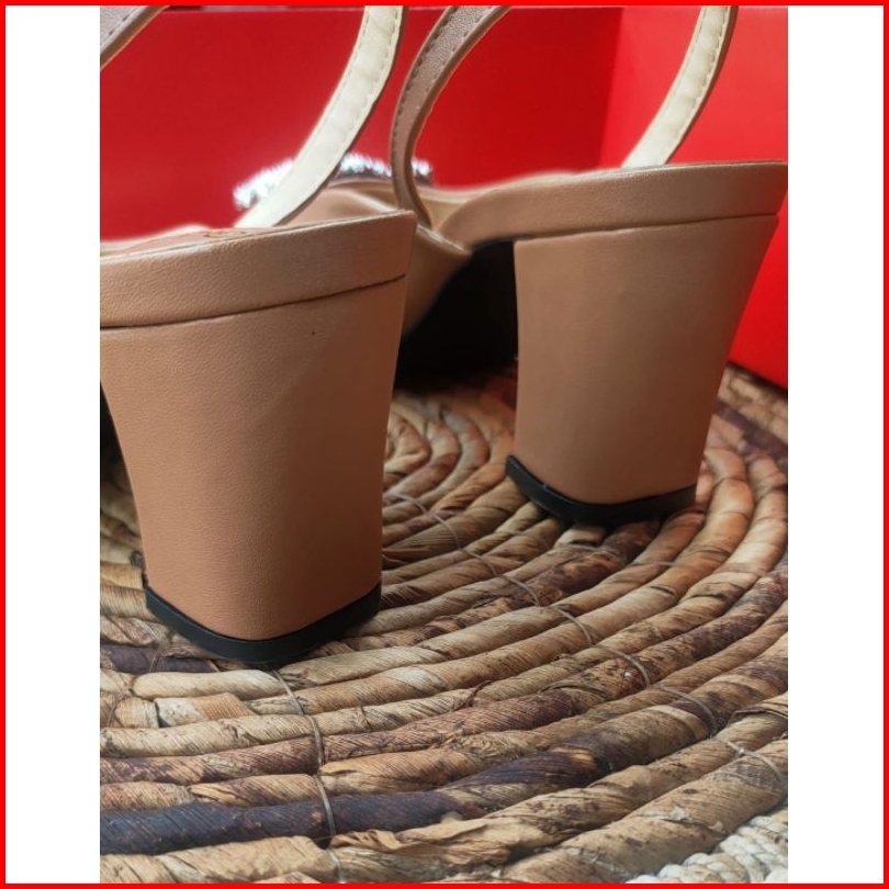 Sendal Heels Wanita 7 Cm Mocca Hitam Krem